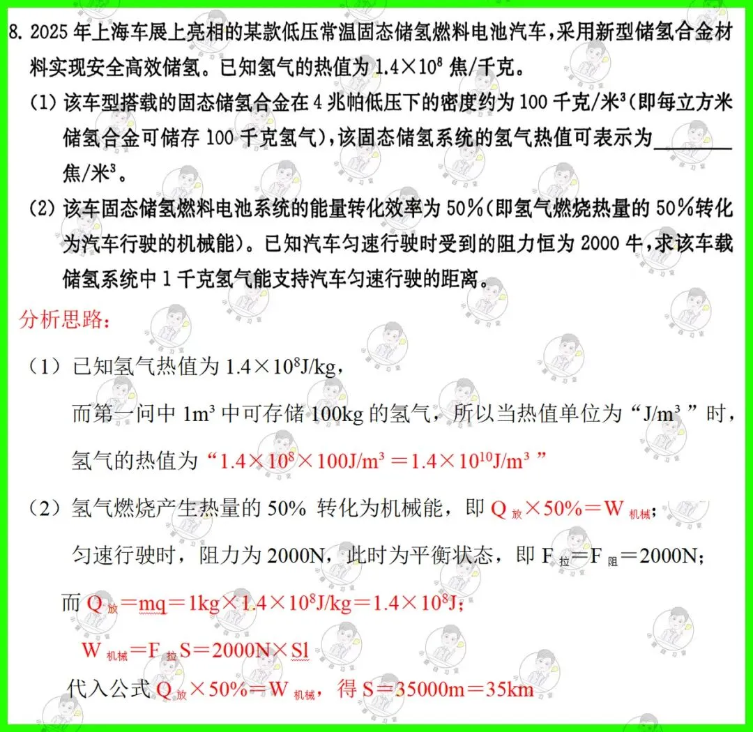 第8题:考查热值的计算,注意此题中气体热值的单位,算是一个小陷阱;第2问的计算需要细心,注意转化效率的含义;