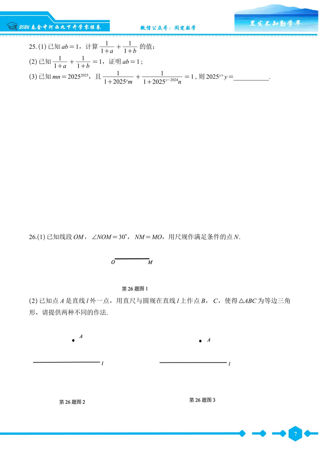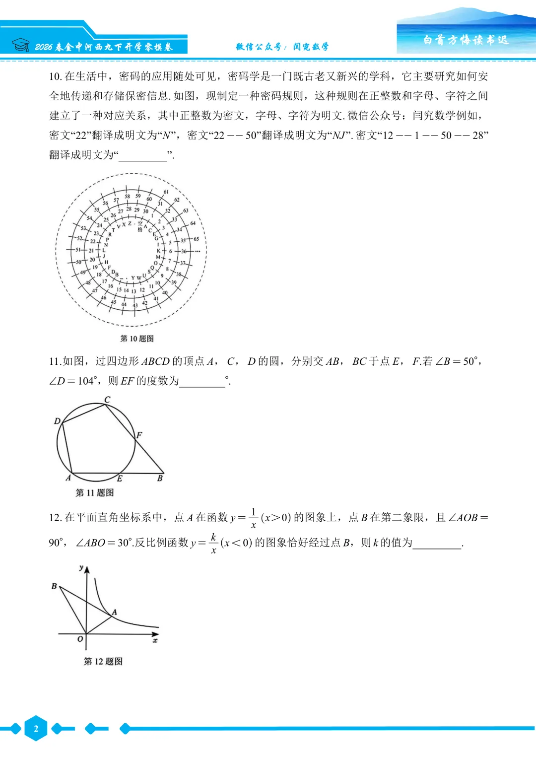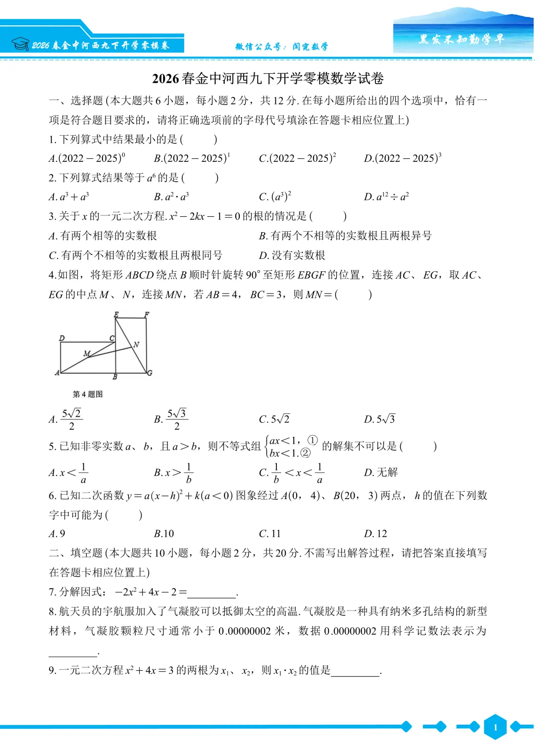2026春金中河西九下开学零模数学试卷--试题版.pdf