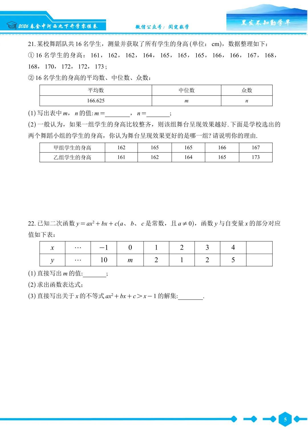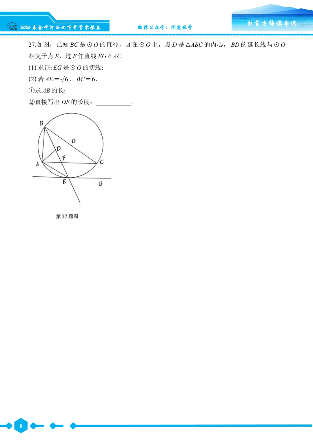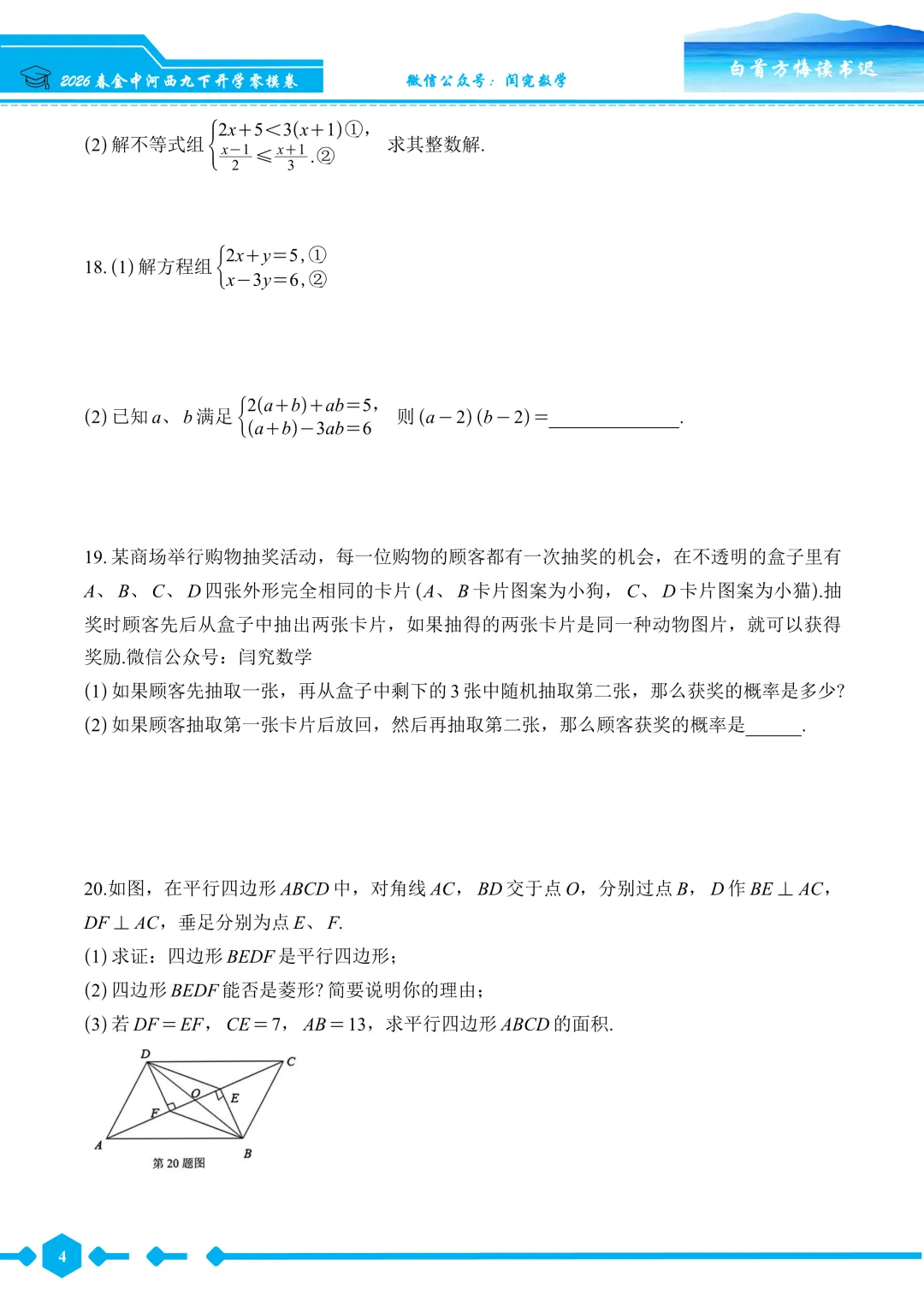 2026春金中河西九下开学零模数学试卷--试题版.pdf