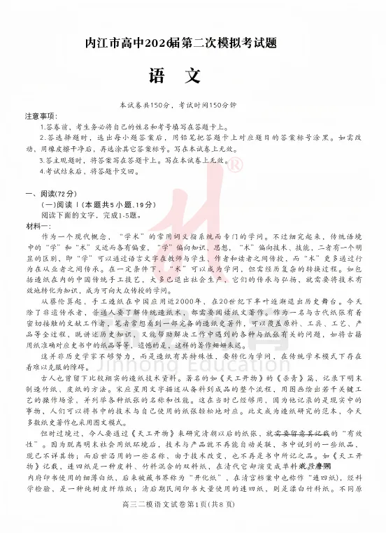 注:文章篇幅有限,只展示部分科目,我们将在考后及时带来相关科目试卷及答案,想要获取2026届内江二模全科试卷及答案高清电子档,可以识别二维码领取: