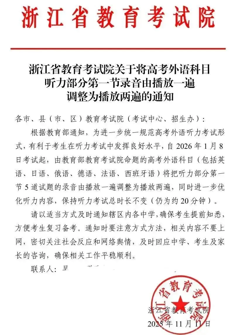 ①播放次数增加:给了考生二次核对答案、查漏补缺的机会,能减少因紧张或疏忽丢的分,对基础较弱的考生更有利。