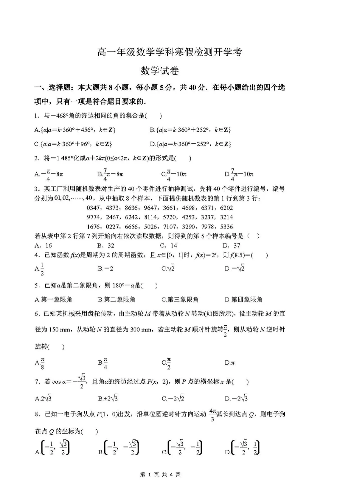 >【试卷分享】河南南阳四中2025-2026学年高一下学期开学考数学+答案