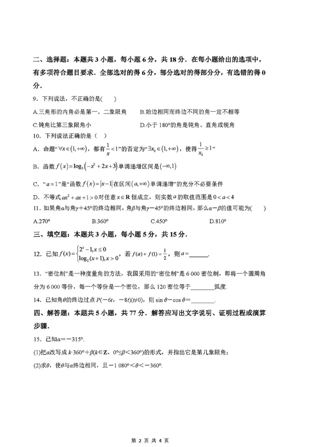 【试卷分享】河南南阳四中2025-2026学年高一下学期开学考数学+答案