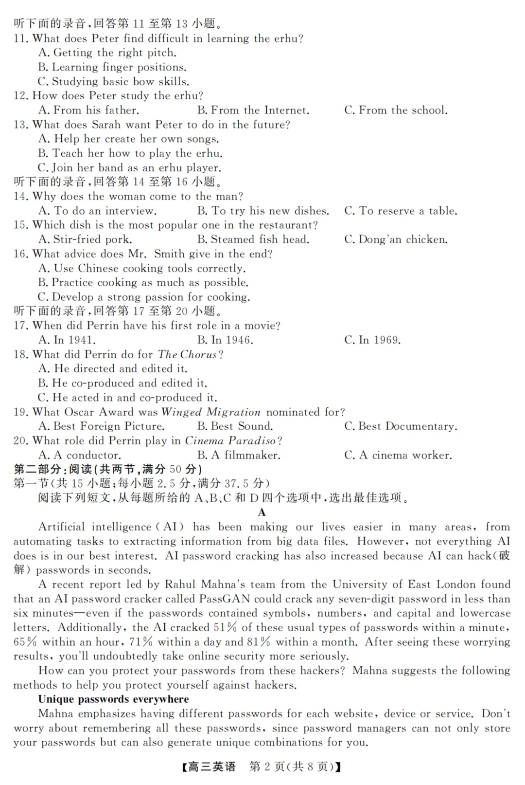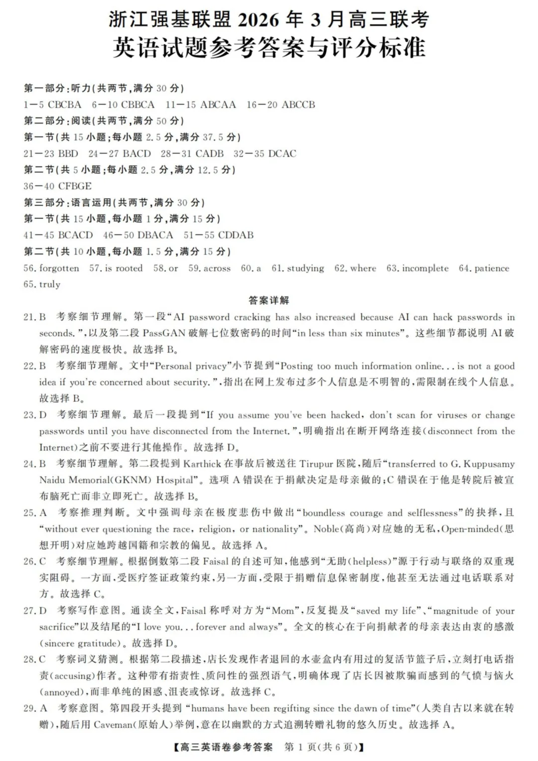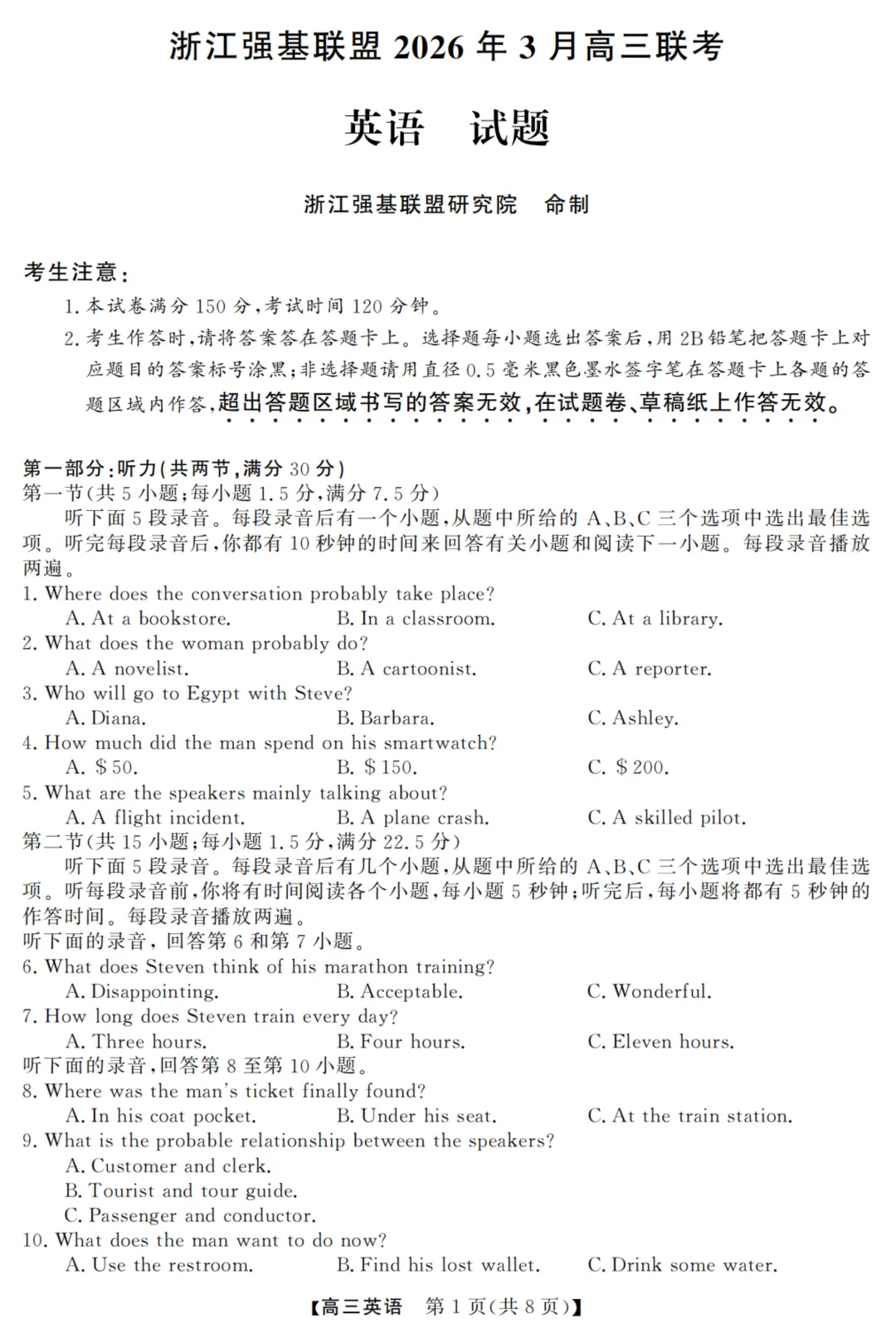 2026年3月高三强基联盟英语试题(下载链接在文末)为尊重出卷老师的劳动成果与方便学习交流,试卷及答案无水印可下载。更多模拟卷,请关注本公众号“浙考英语模拟试卷”合集。为尊重出卷老师的劳动成果与方便学习交流,试卷及答案无水印可下载。更多模拟卷,请关注本公众号“浙考英语模拟试卷”合集。2026年3月高三强基联盟英语试题+答案+听力-百度网盘链接