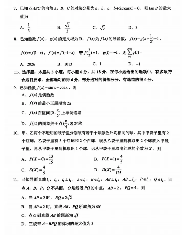 必刷卷推荐,山东省青岛市高三零模数学试卷及逐题解析(2026.3)