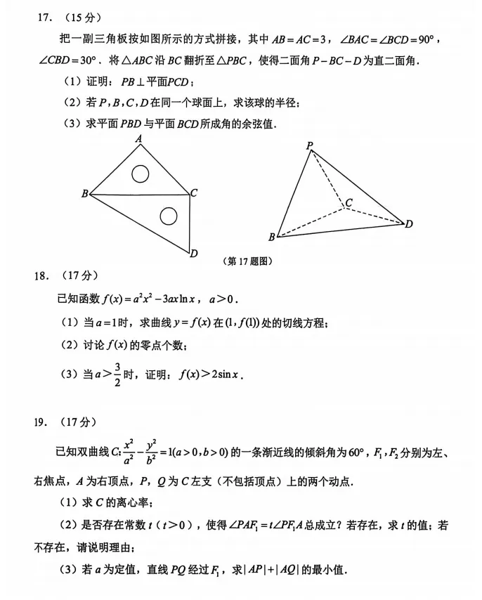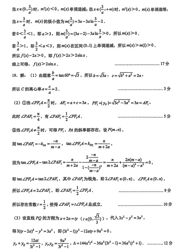 一模数学卷点评:本章试卷单选前七题属于基础题,第八题抽象函数周期,属于难题!多选题前两题基础题,最后一题立体几何动点雷问题属于难题!填空题前两题属于基础题!填空最后一题圆的轨迹问题!但是如果熟悉矩形大法也就可以看出答案!属于中档题!大题前三题都属于基础题型!大题第18题第二问也可以分离变量,用极限,不用找点最多扣两分!第三问是很明显的放缩,大题最后一题第二问是离心率为2的双曲线一个性质,在2021年八省联考有出现过!最后一问属于难题,很难想到基本不等式再用面积转化!总体来说基础题基础,把关题难度较大!应该来说单选对7题35分!多选对2题最后一个多选当单选得2分!也就14分!填空对2个10分,大题前三题全队43分,扣掉过程分得40分,最后两题对第一问共得6分!这样算下来应该也有105分!其实老师想说的高考不是说把难题最对,只要把你认为会做题的题目做对,不失误便是成功!