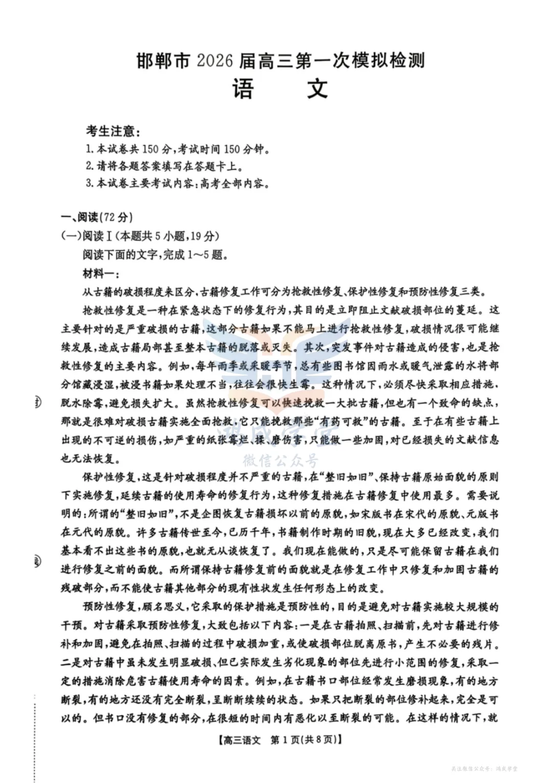 语文试卷-邯郸市2026届高三第一次模拟检测.pdf