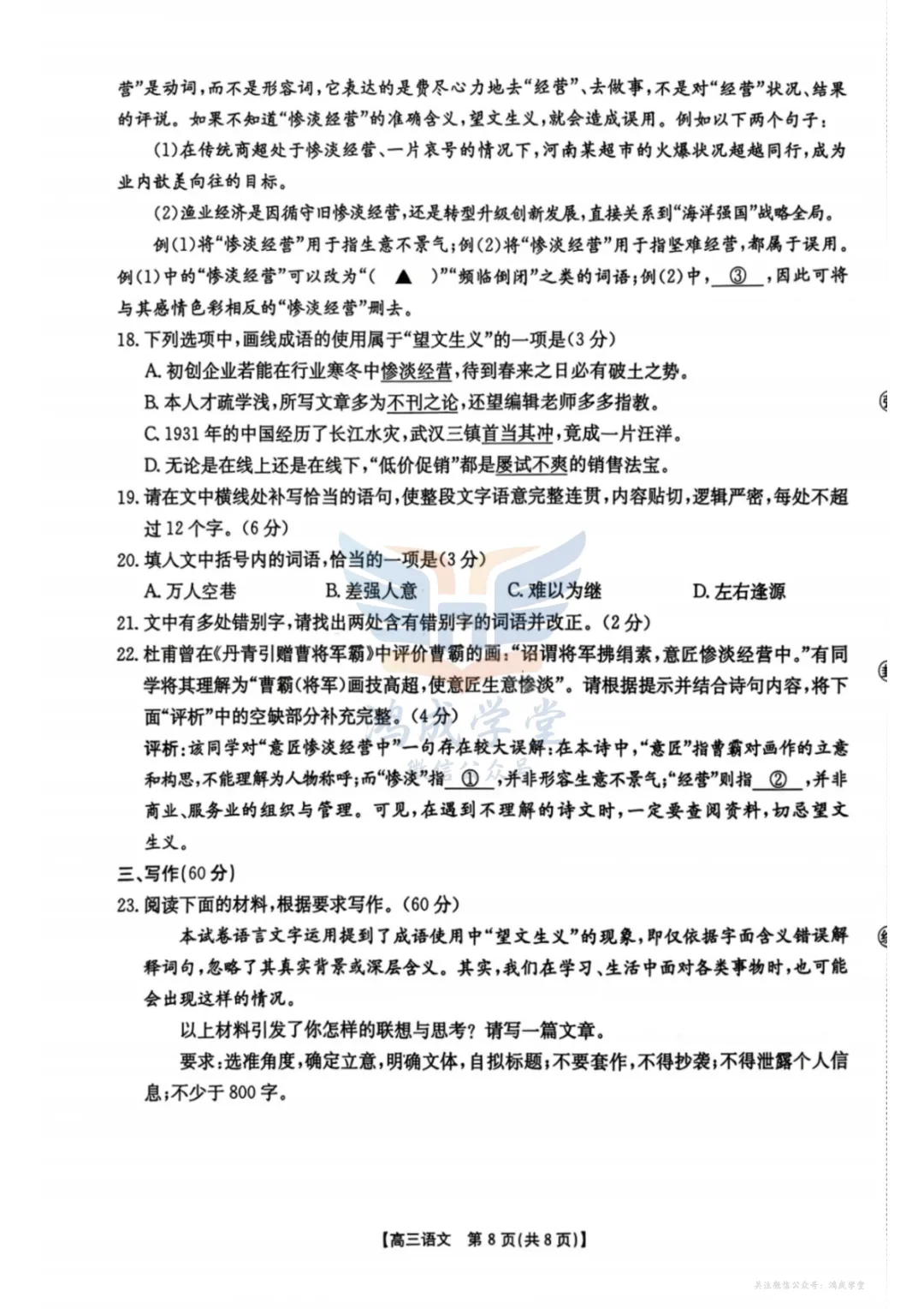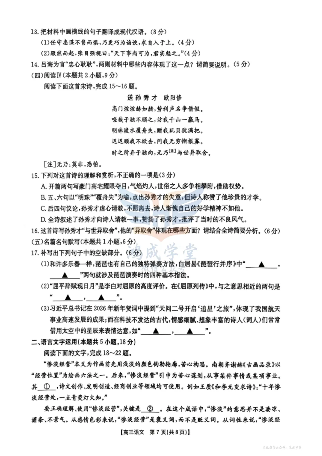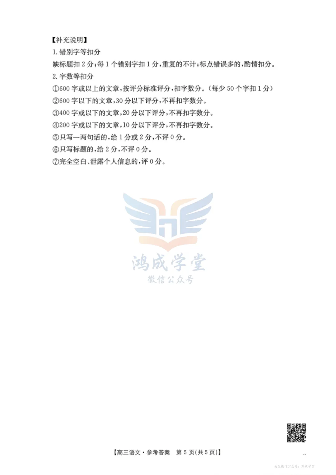 关注微信公众号,回复“鸿成学库”可自动获取,或者缩写hcxk,获取鸿成学堂试卷总库