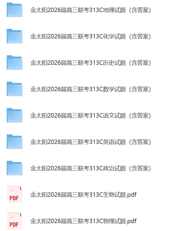 今天给大家准备的是:2026届金太阳高三3月全国百万联考试卷和答案。2026届金太阳高三3月全国百万联考试卷和答案地理试卷+答案2026届金太阳高三3月全国百万联考试卷和答案化学试卷+答案2026届金太阳高三3月全国百万联考试卷和答案历史试卷+答案2026届金太阳高三3月全国百万联考试卷和答案生物试卷+答案