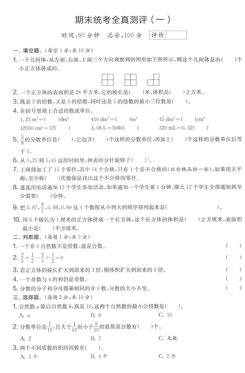 南开区小学五年级第二学期期中期末复习试卷(真题1套)