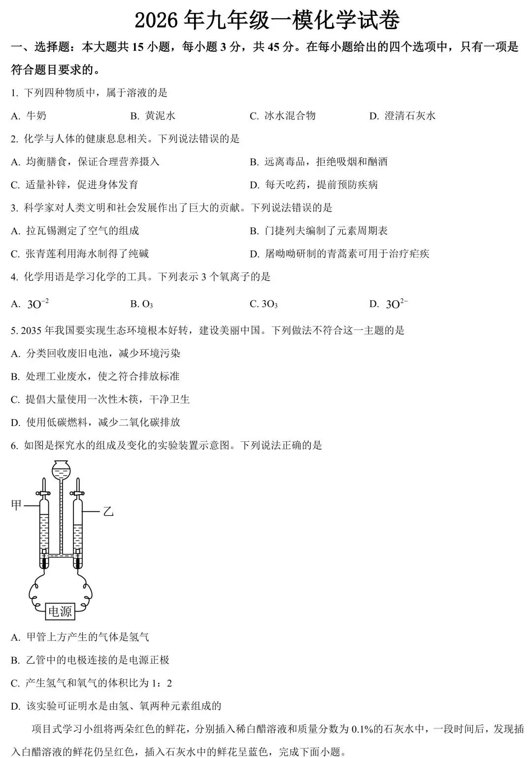2026年3月广东中考化学第一次模拟试卷(含答案)
