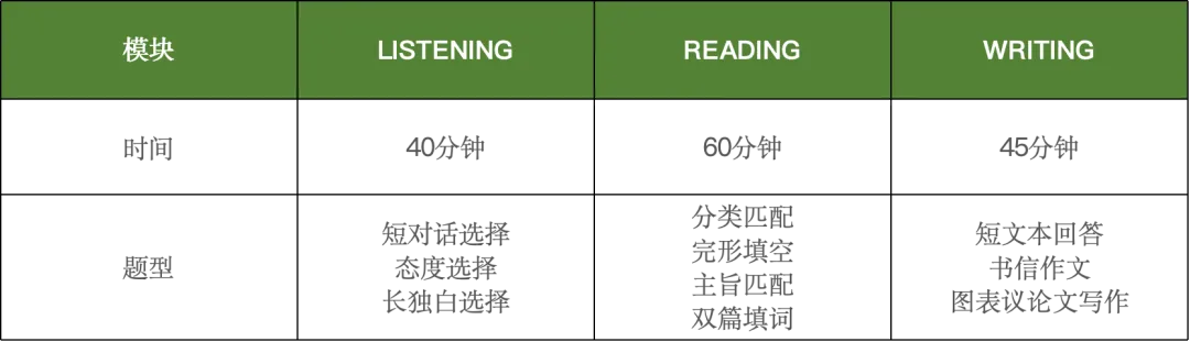 注意:在考试中,英语是分模块独立收卷,听力、阅读、写作每考完一科就收一次卷,不能先写作文再回头做阅读,也不允许跨模块答题!