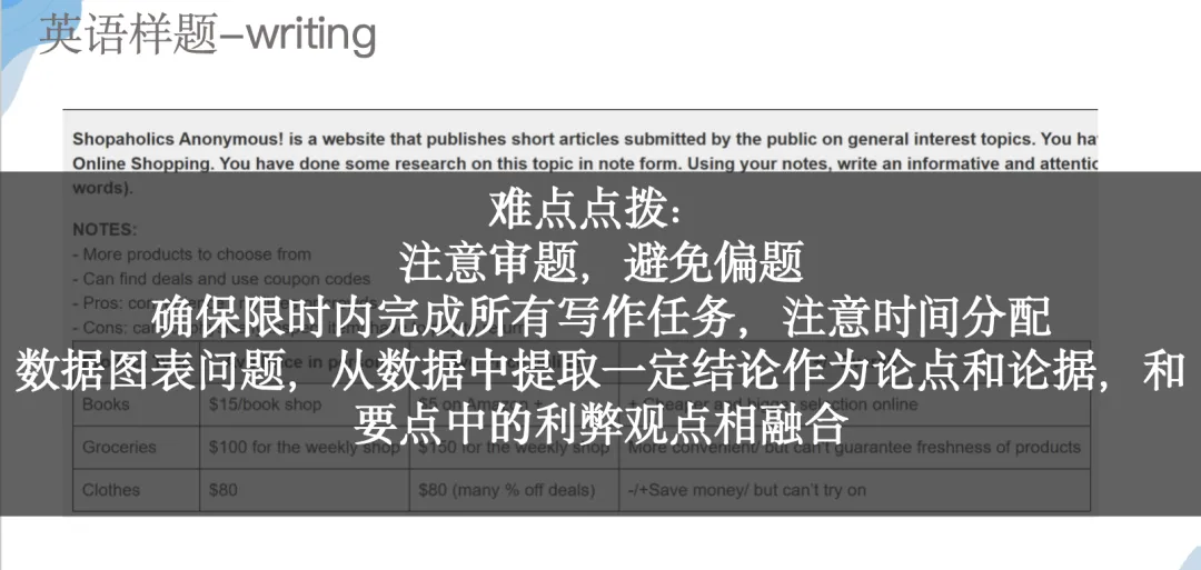 先看清楚题目要求,审清楚题意,避免偏题或者是遗漏需要回答的内容永远是最重要的