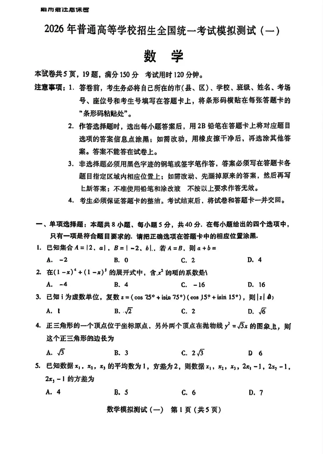 重庆市第一中学校2026届高三数学月考卷数学试题合集