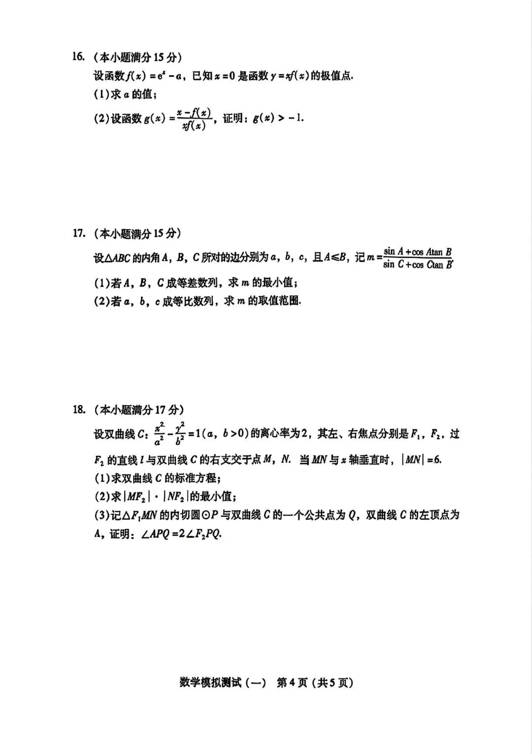 天思全国高三名校数学试卷分享