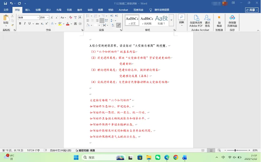 此题相关内容在冲刺班模拟套题二的论述题3中做了设计,“结合党的建设历程,谈谈你对‘大党独有难题’的理解”,在上课时提供了一些答题思路借鉴,也对同学们的作答做了些针对性讲解。