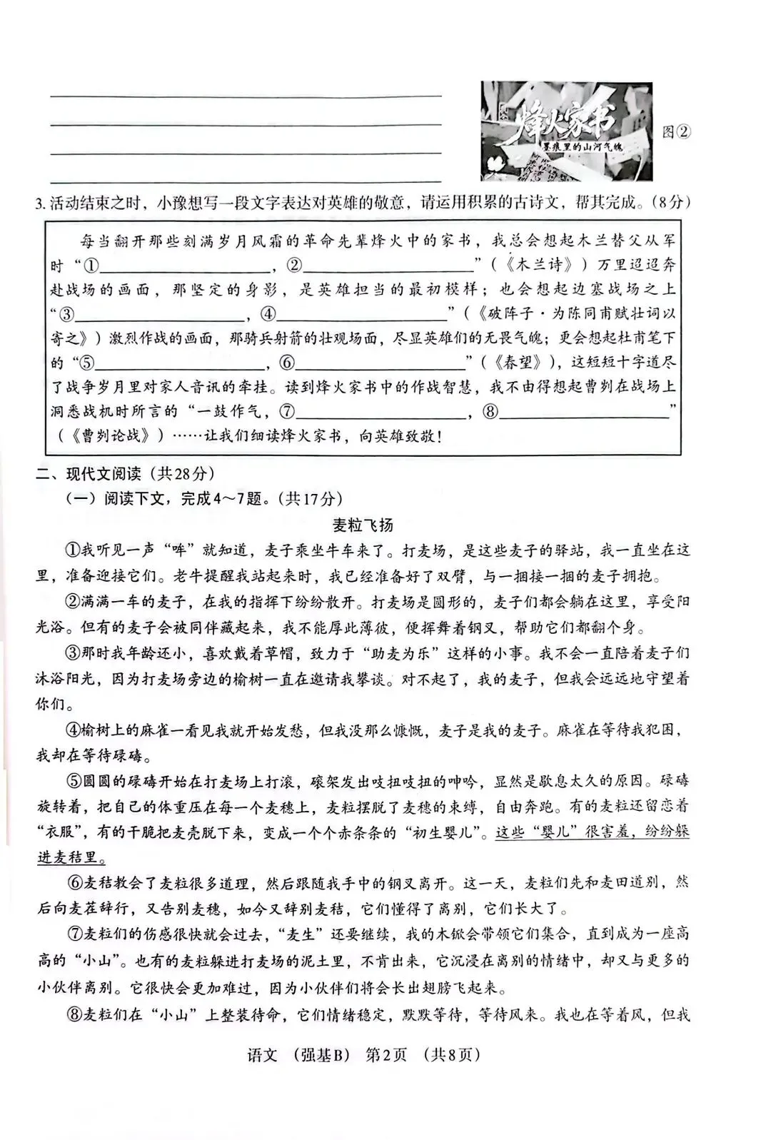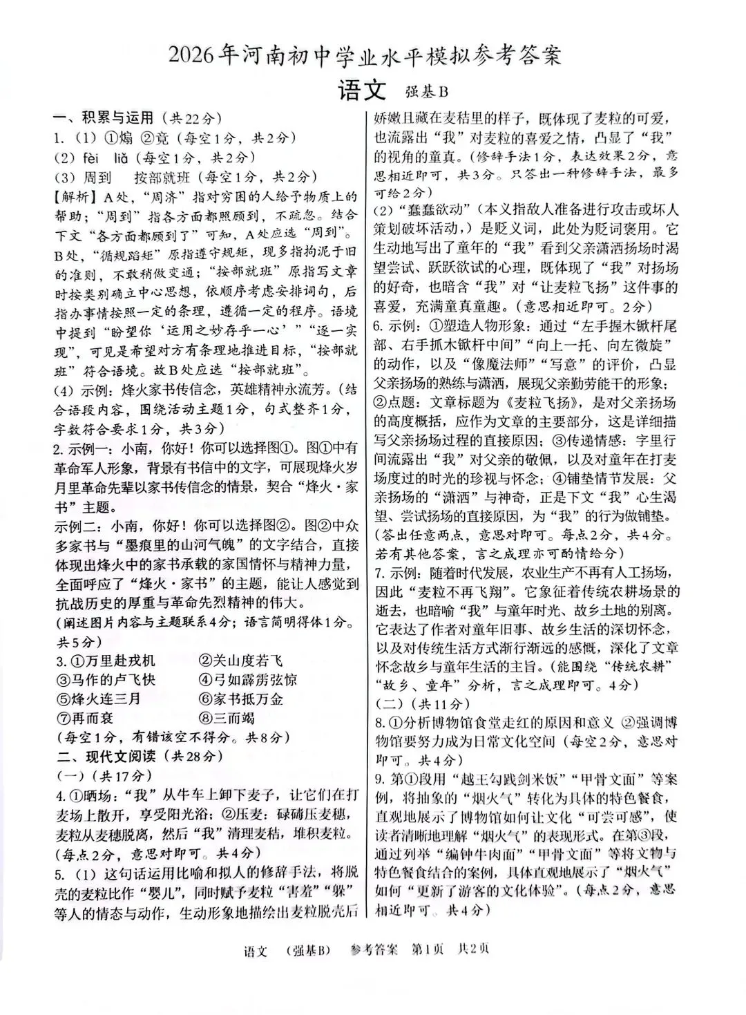 分享一份2026中考语文模拟试卷(强基B)