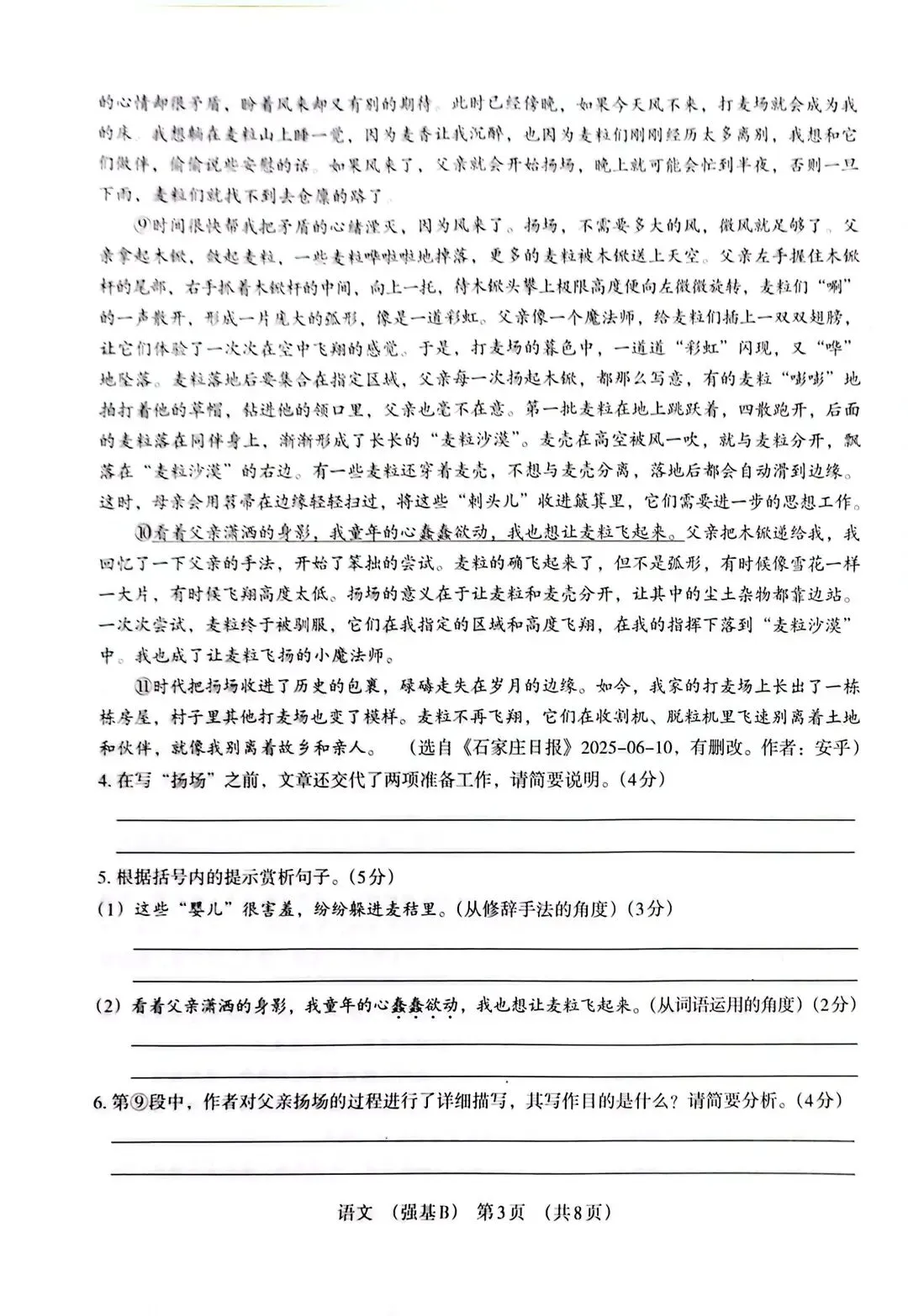 文学类文本《麦粒飞扬》:以乡土记忆为载体,考查词句赏析、段落作用与主旨探究,充满生活质感与时代变迁感。
