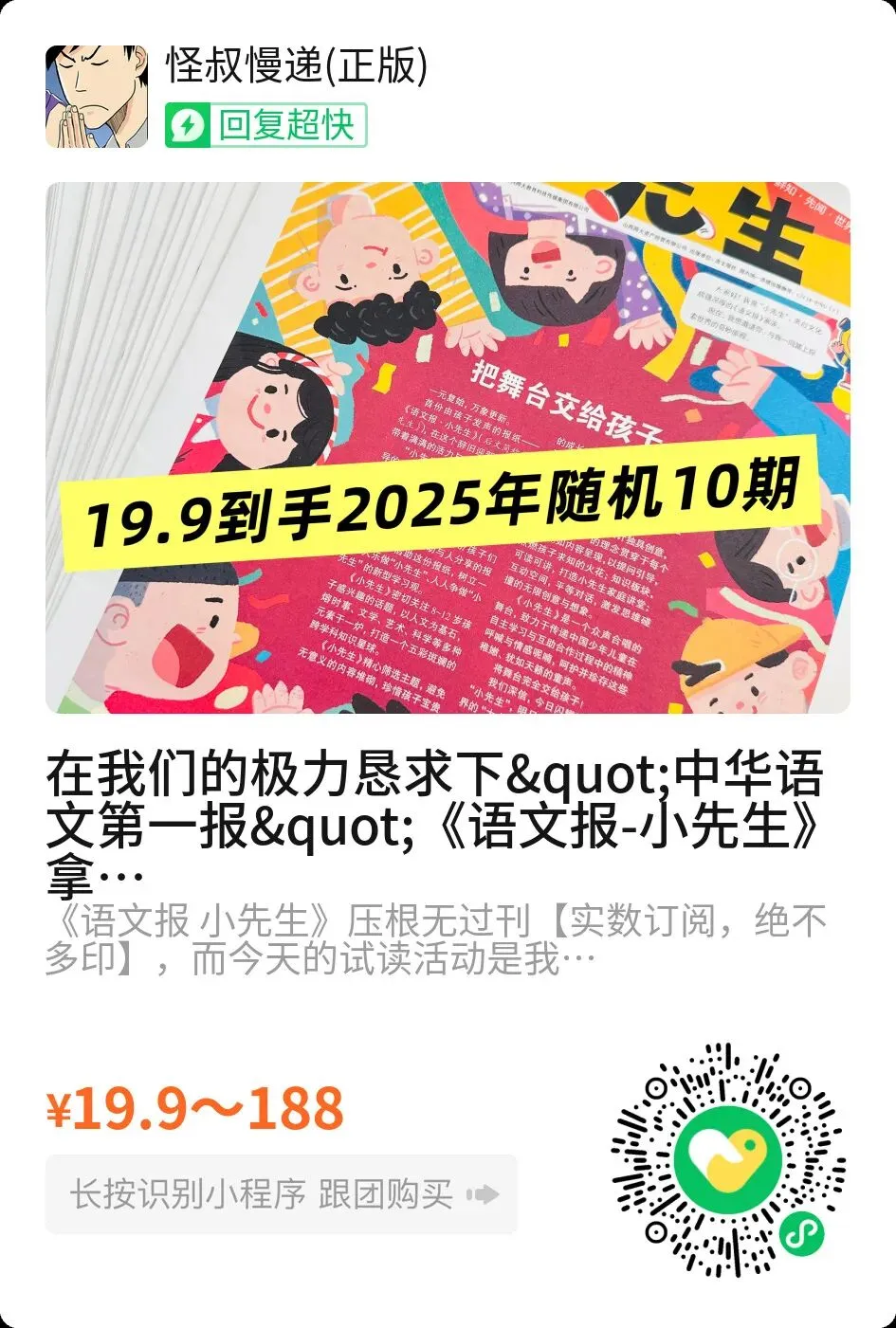 "中华语文第一报"《语文报-小先生》拿出1000套赔钱做试读活动‼️