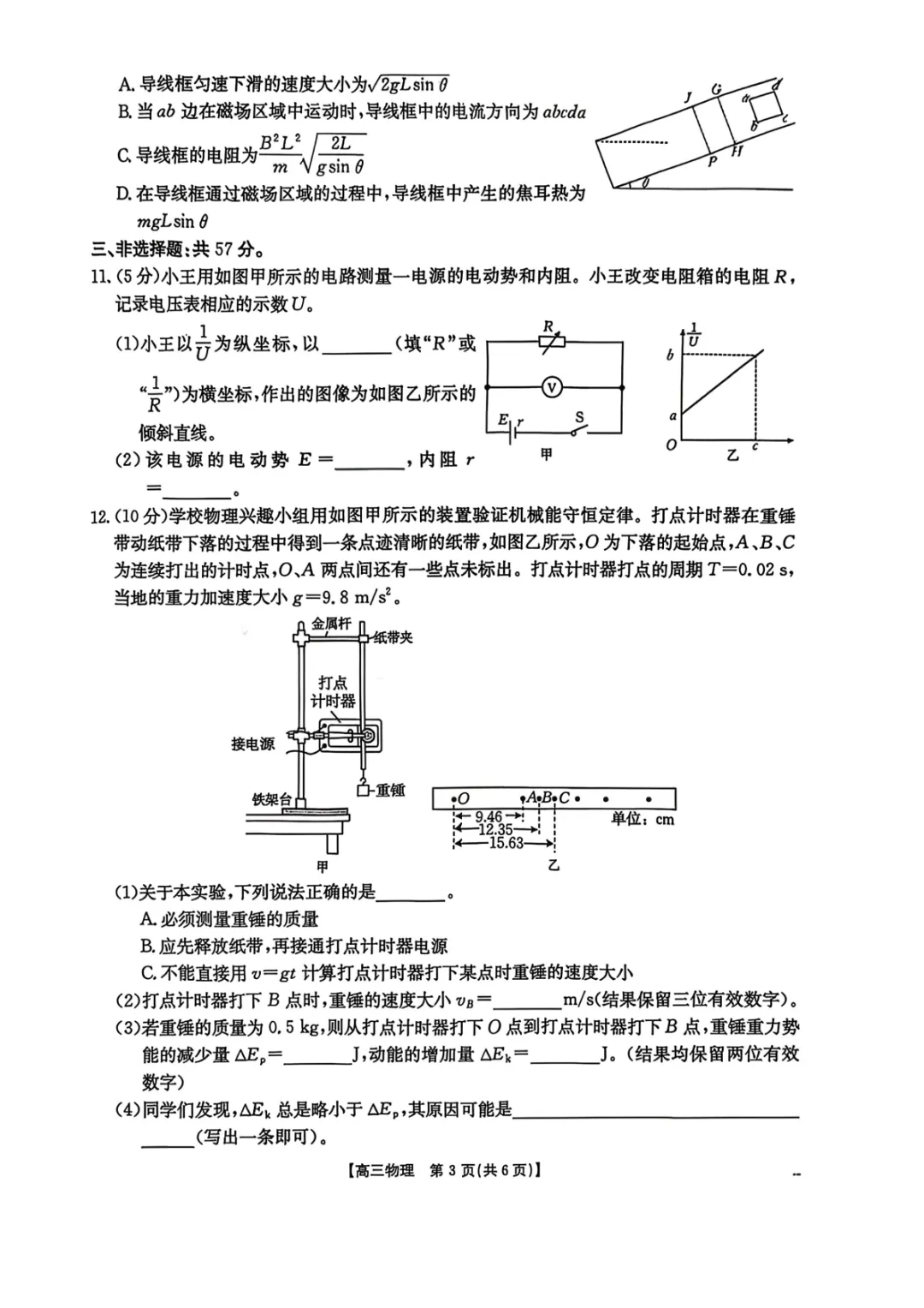2026届邯郸市高三一模物理试卷+答案