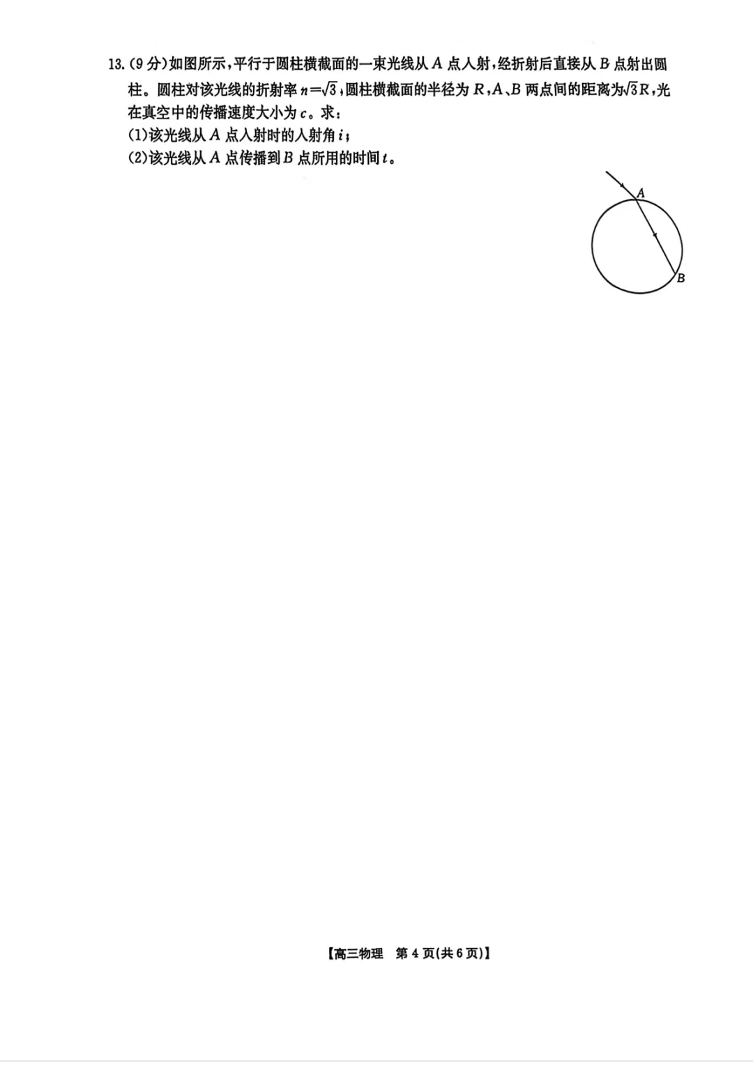 2026届青岛市高三一模物理试卷+答案