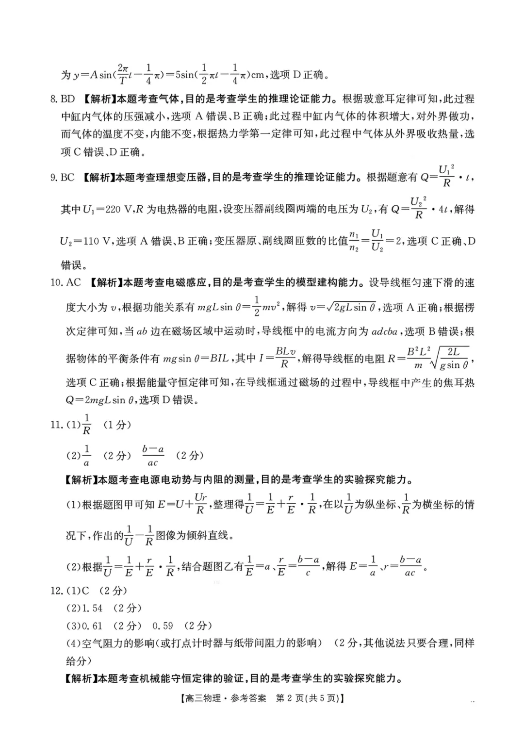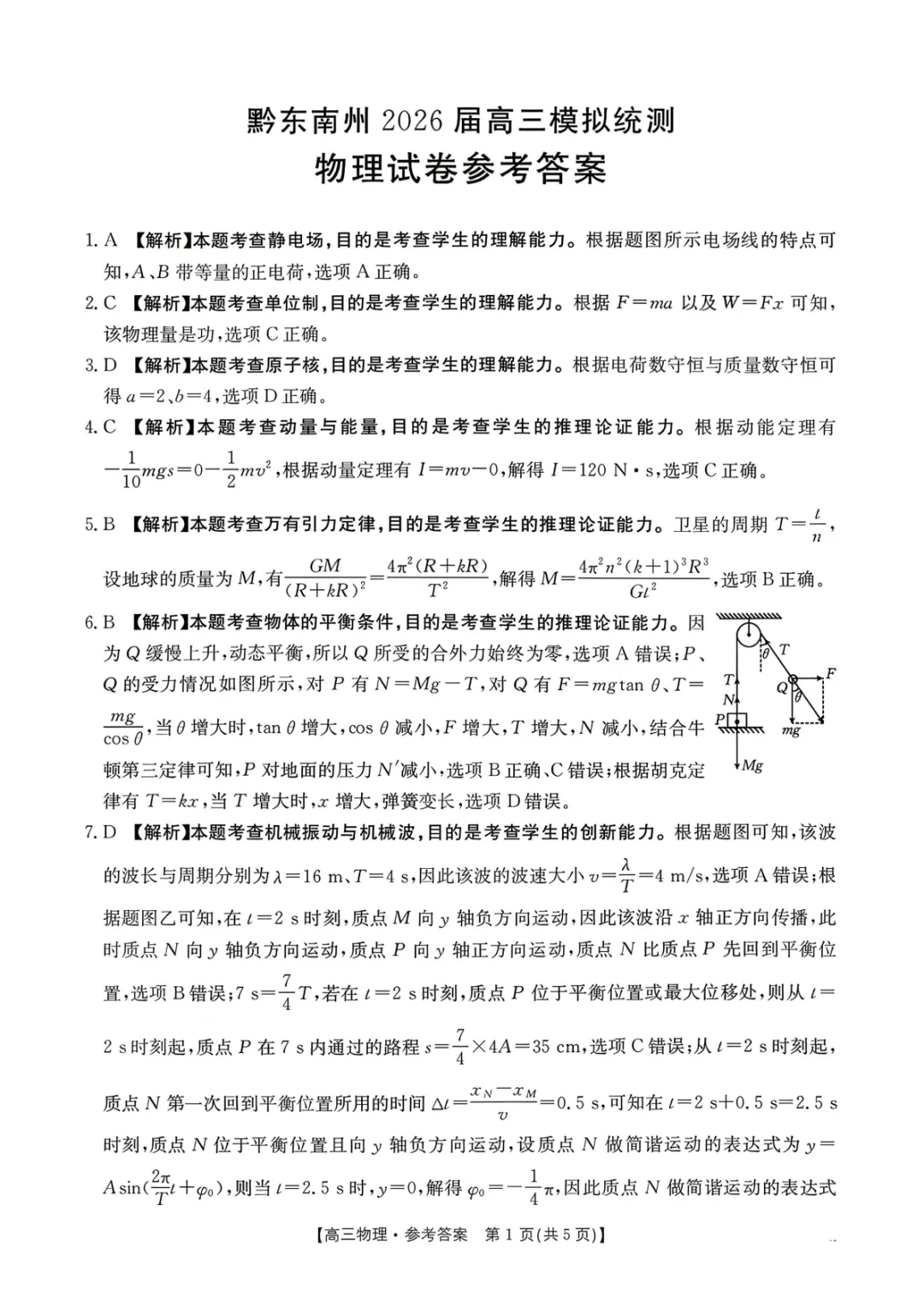2026届黔东南州高三一模物理试卷+答案(统测)
