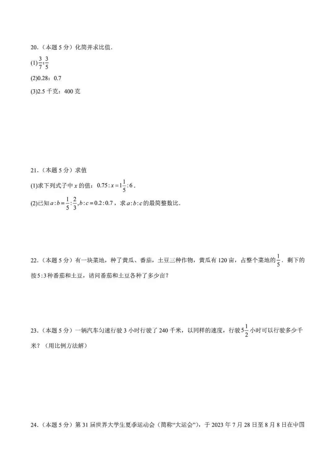 2026春人教版数学《给力大试卷》含答案 一二三四五六年级下册 电子版可打印