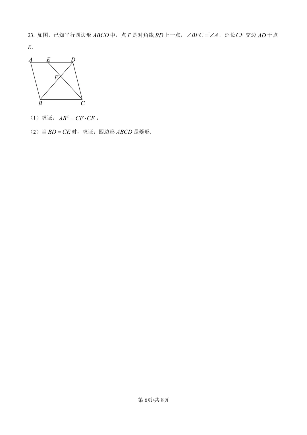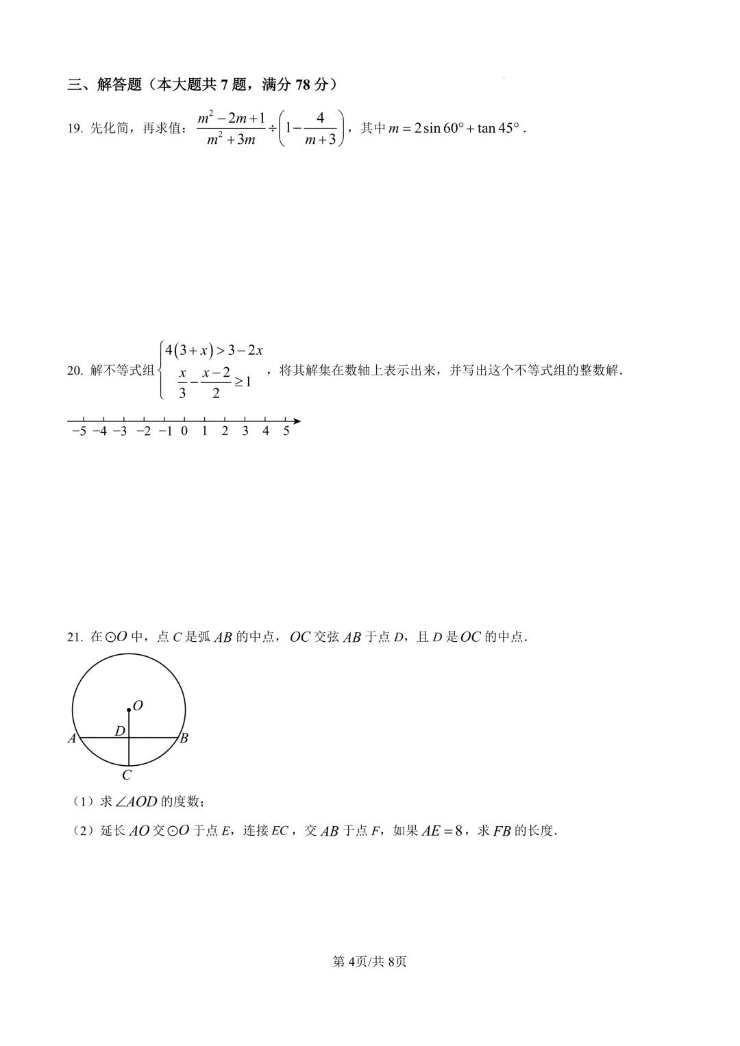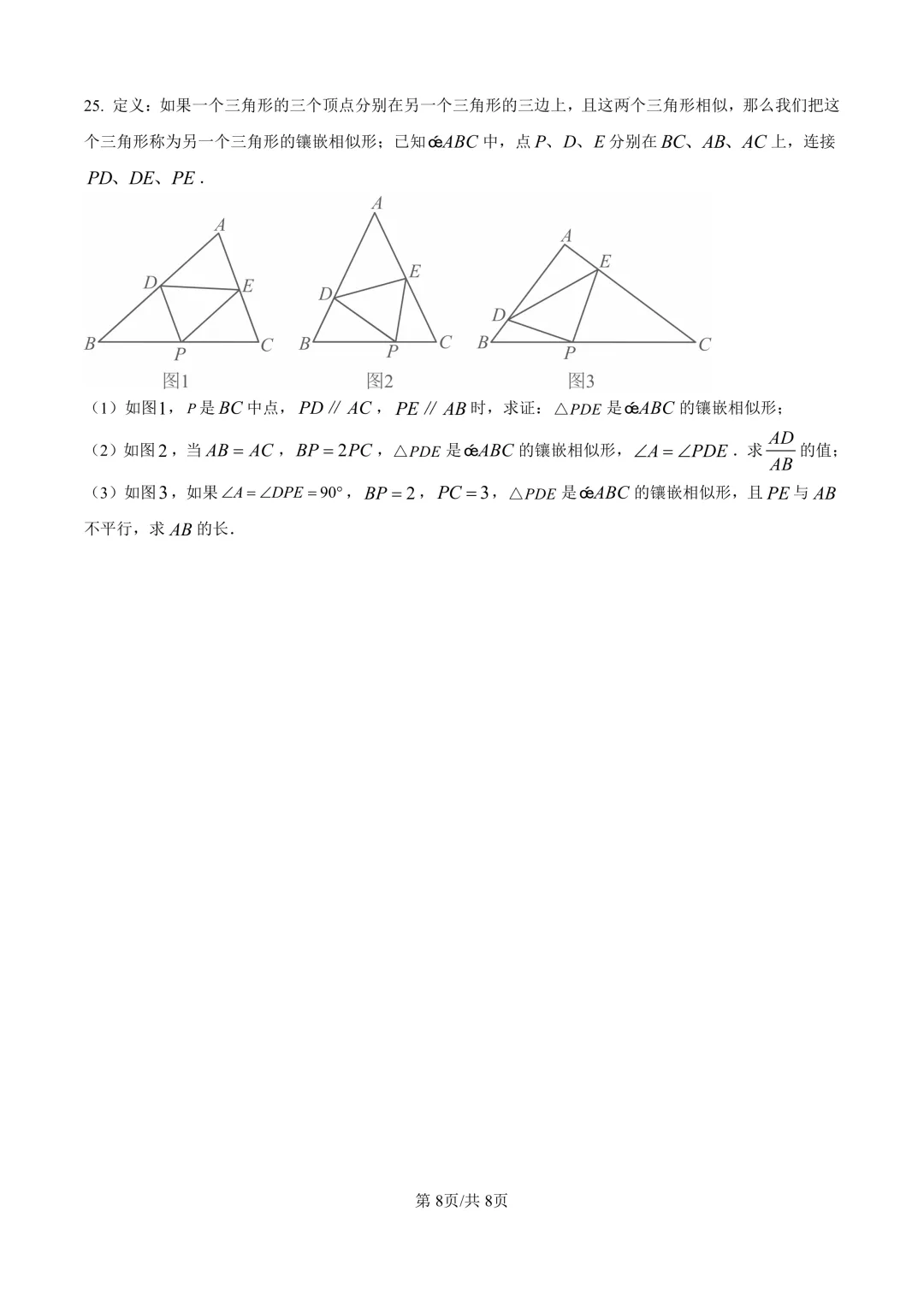 2025届上海市奉贤区初三二模数学试卷(原卷版+解析版)