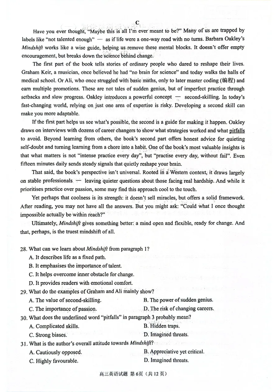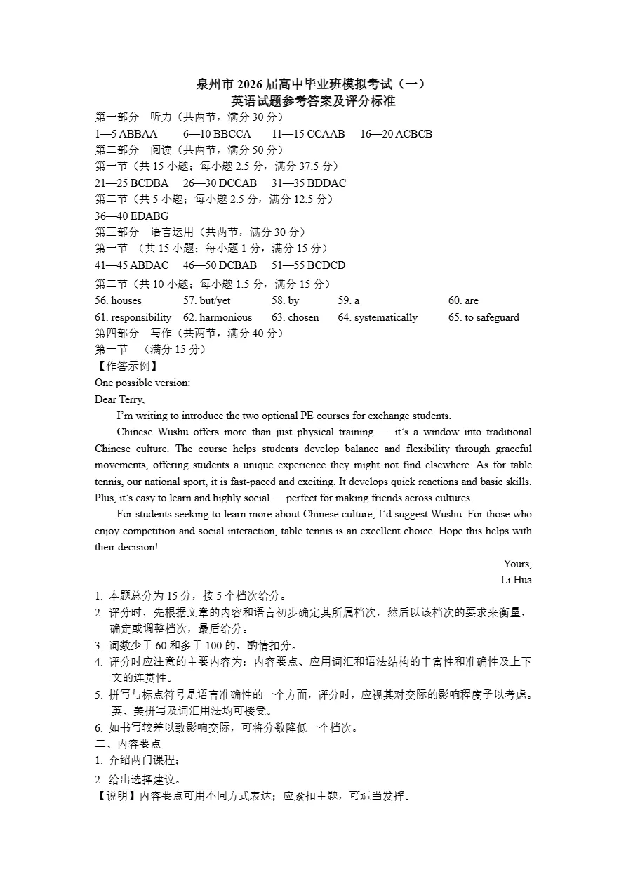 当前位置:首页>考研真题>试卷分享:泉州市2026届高中毕业班模拟考试(一)3月