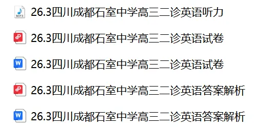 通过网盘分享的文件:26.3四川成都石室中学高三二诊英语听力.mp3等3个文件