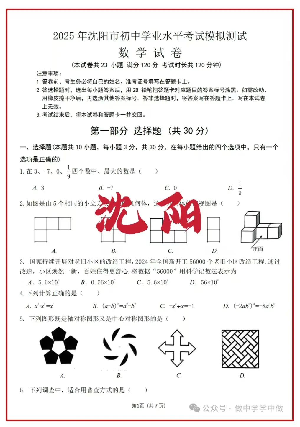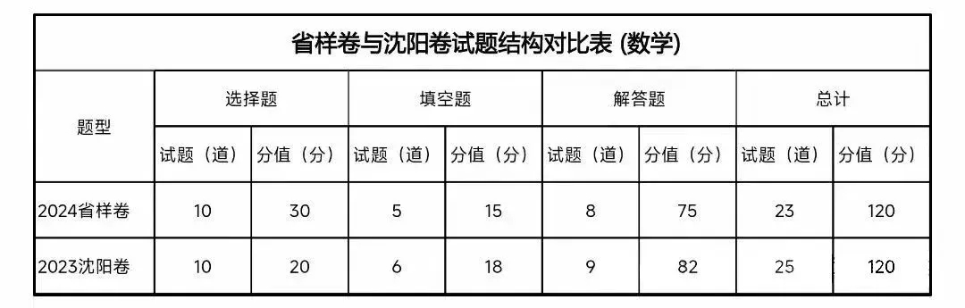 一、试题数量有改变。省样卷是23道题,沈阳中考是25道题。具体变化为:填空题减少一道题,省样卷是5道题,沈阳中考是6道题。解答题减少一道题,省样卷是8道题,沈阳中考是9道题。