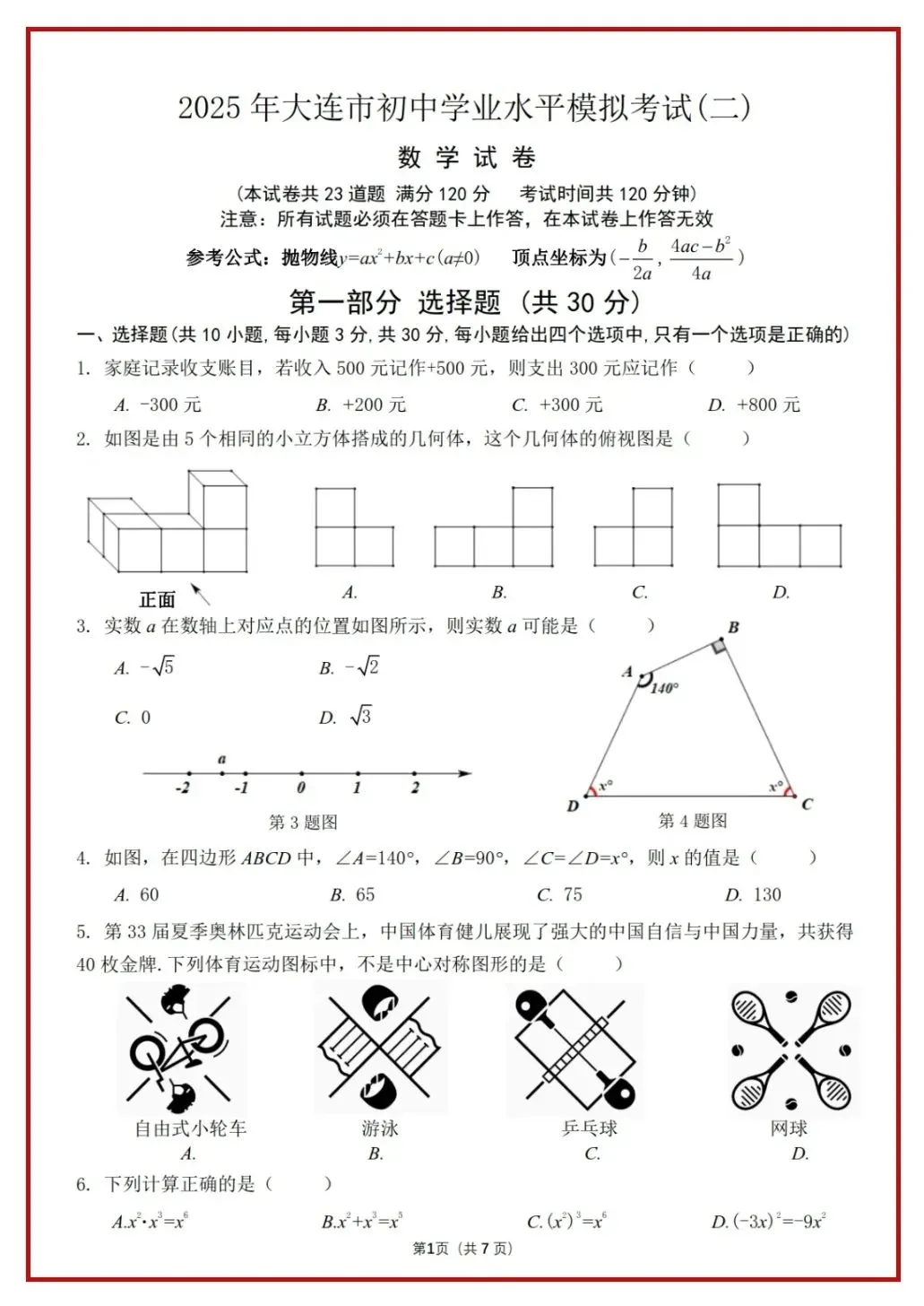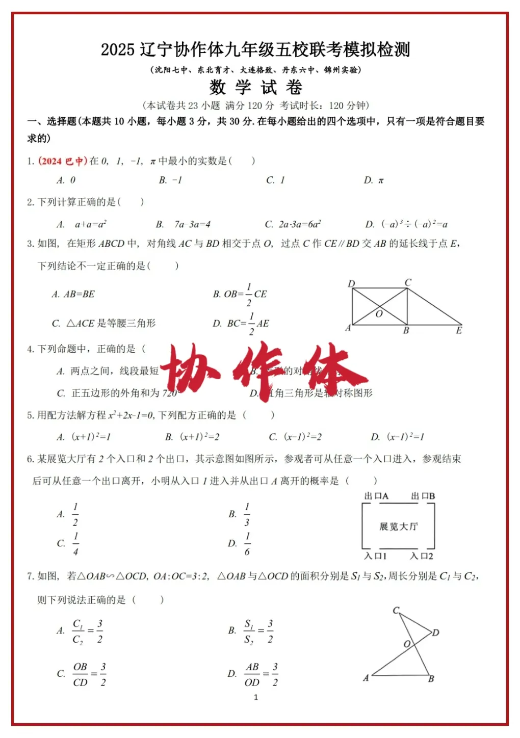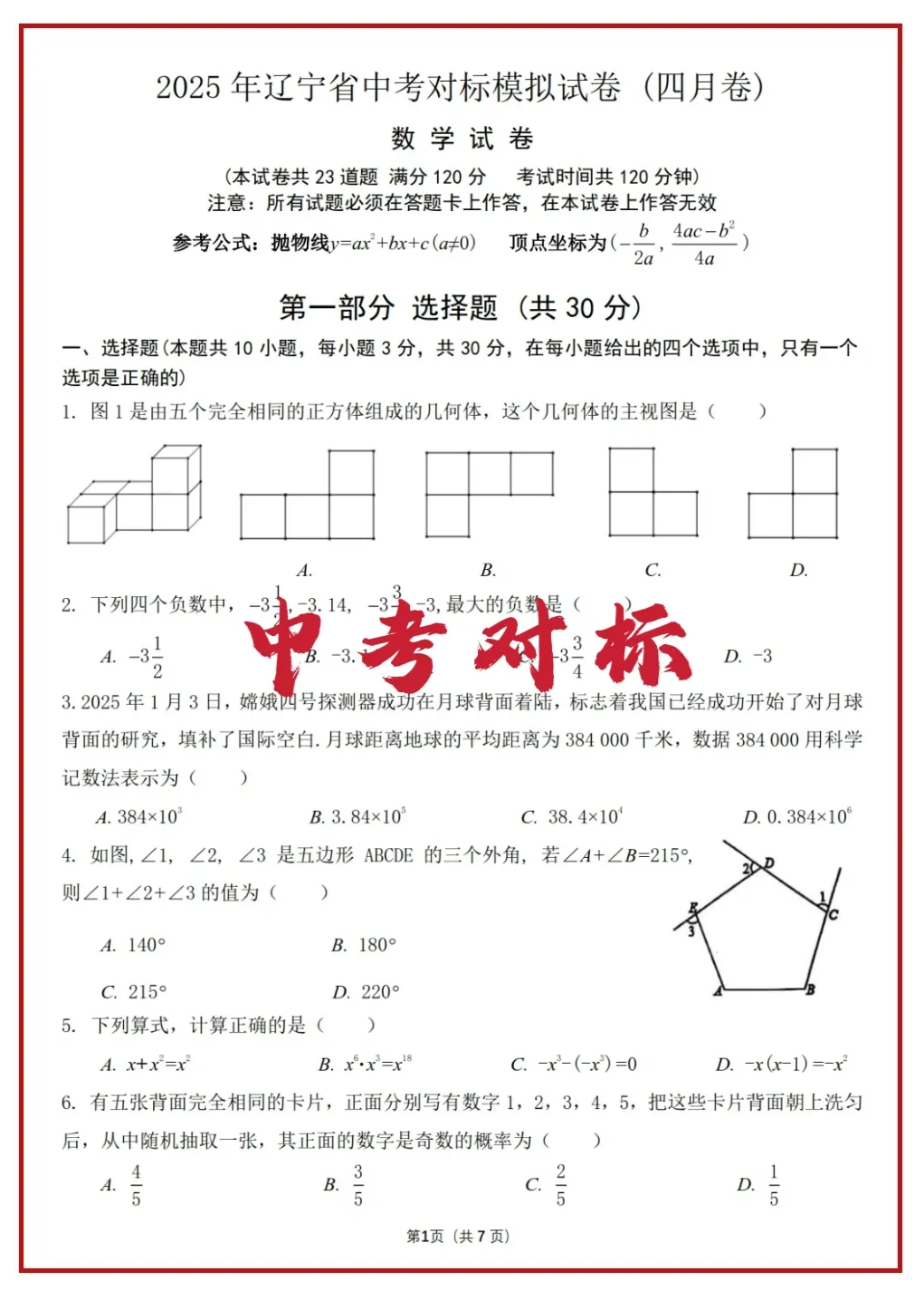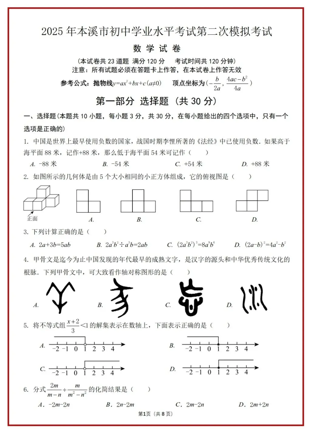 2024年辽宁省首次全省中考统考