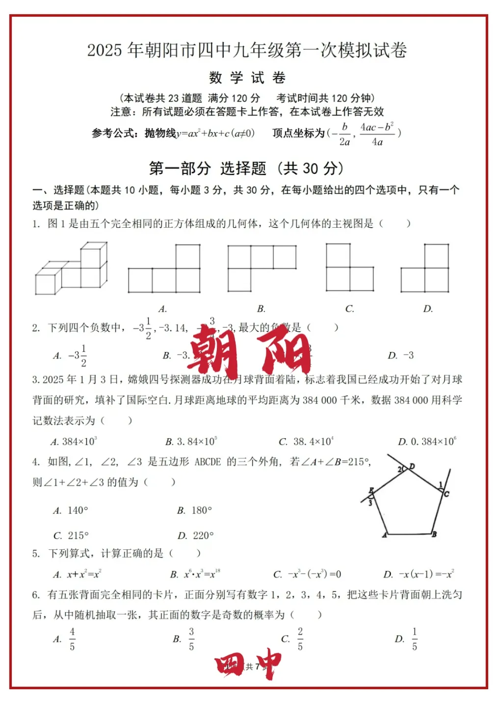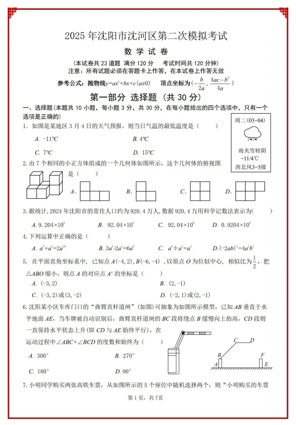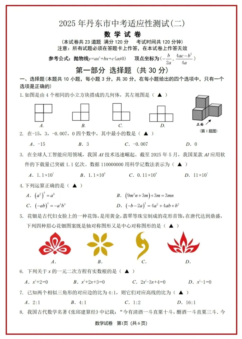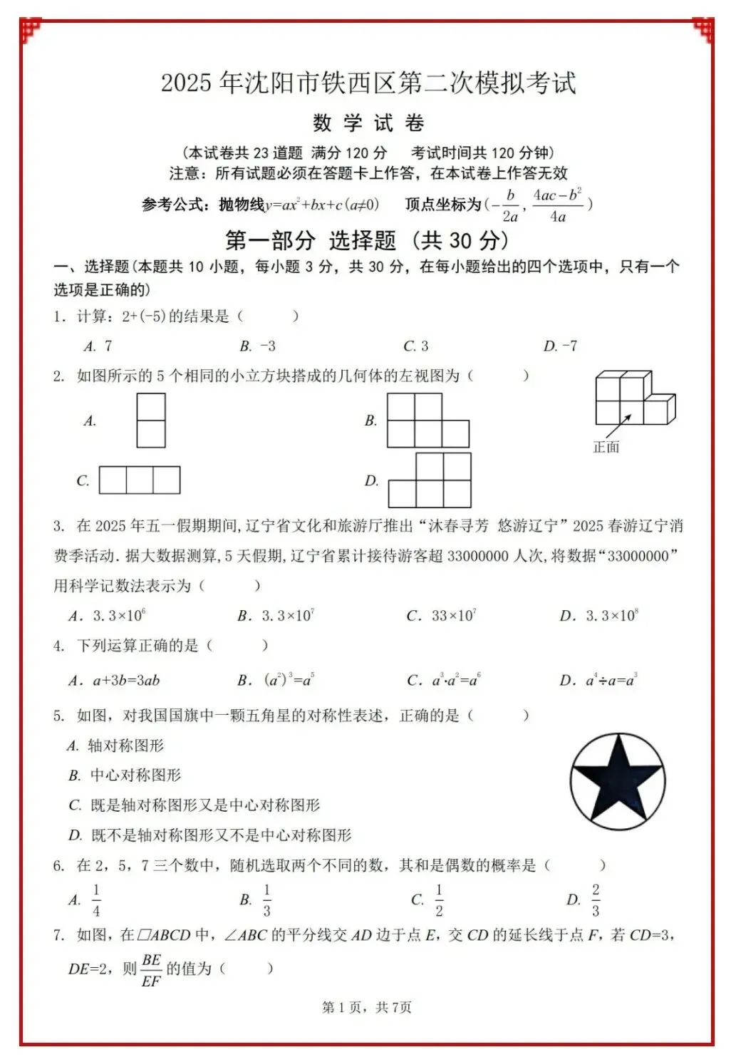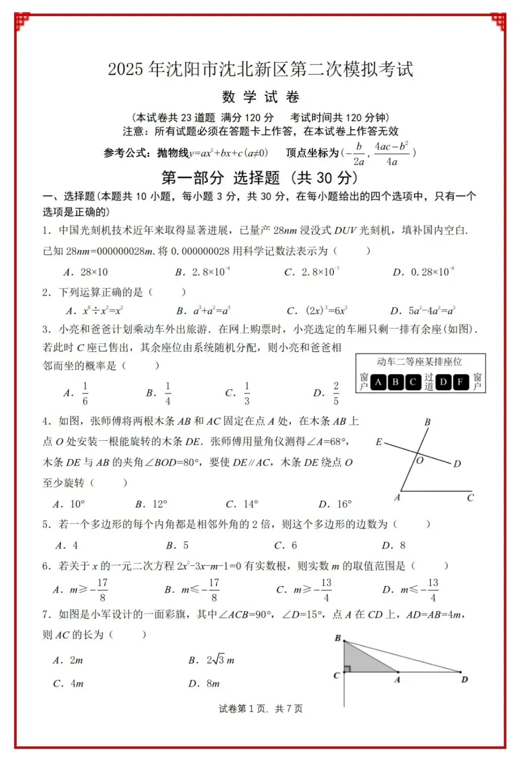 2024年辽宁省首次全省中考统考