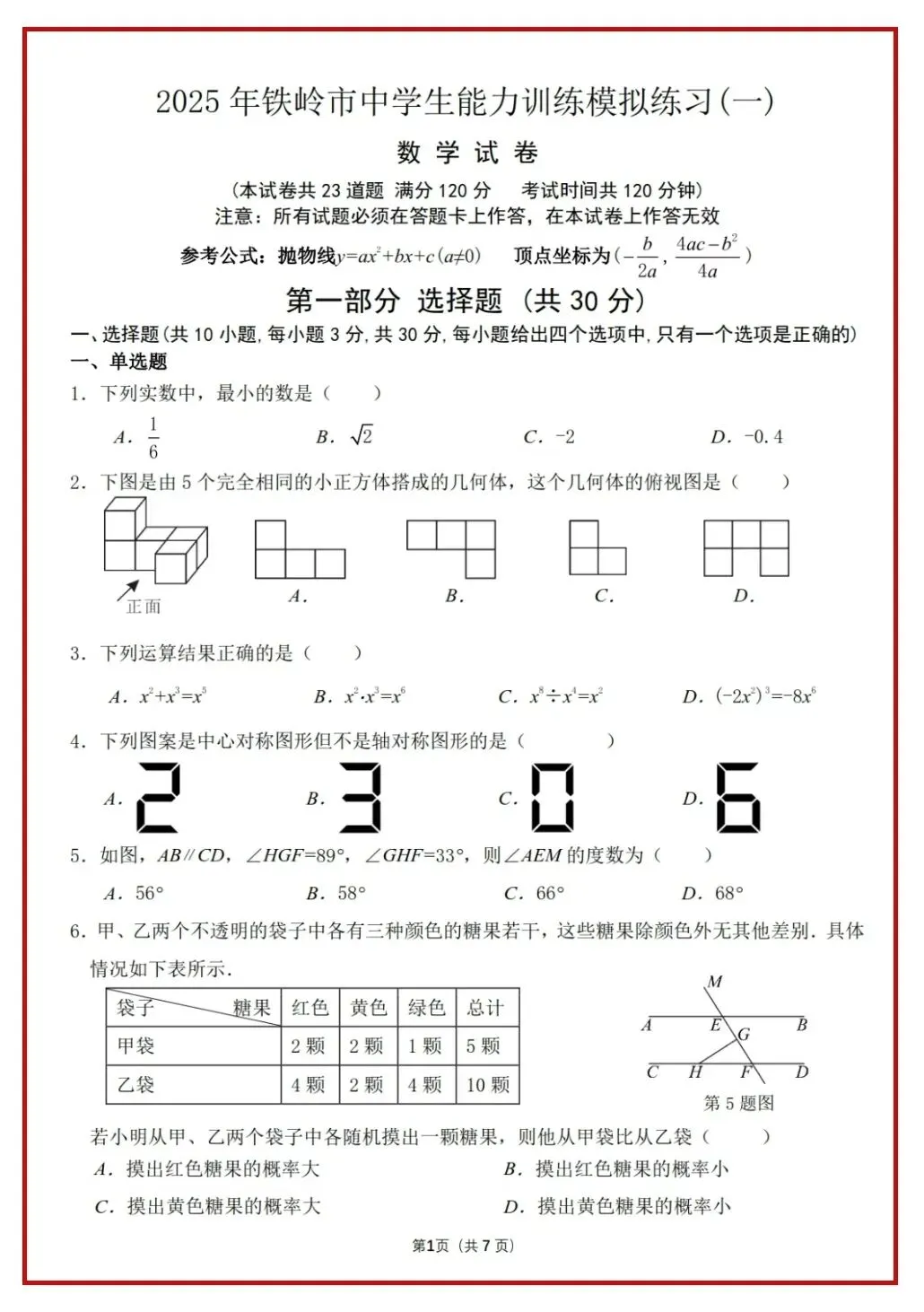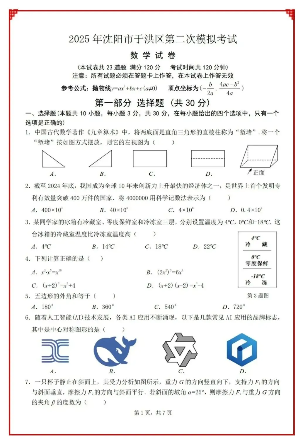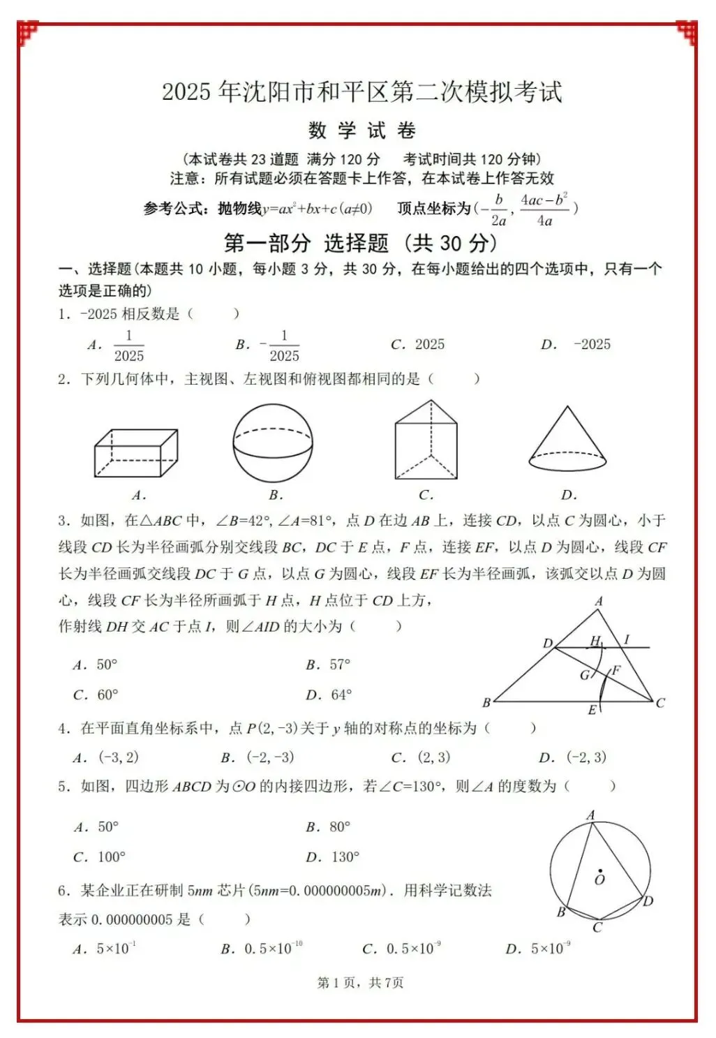 2024、2025中考数学真题
