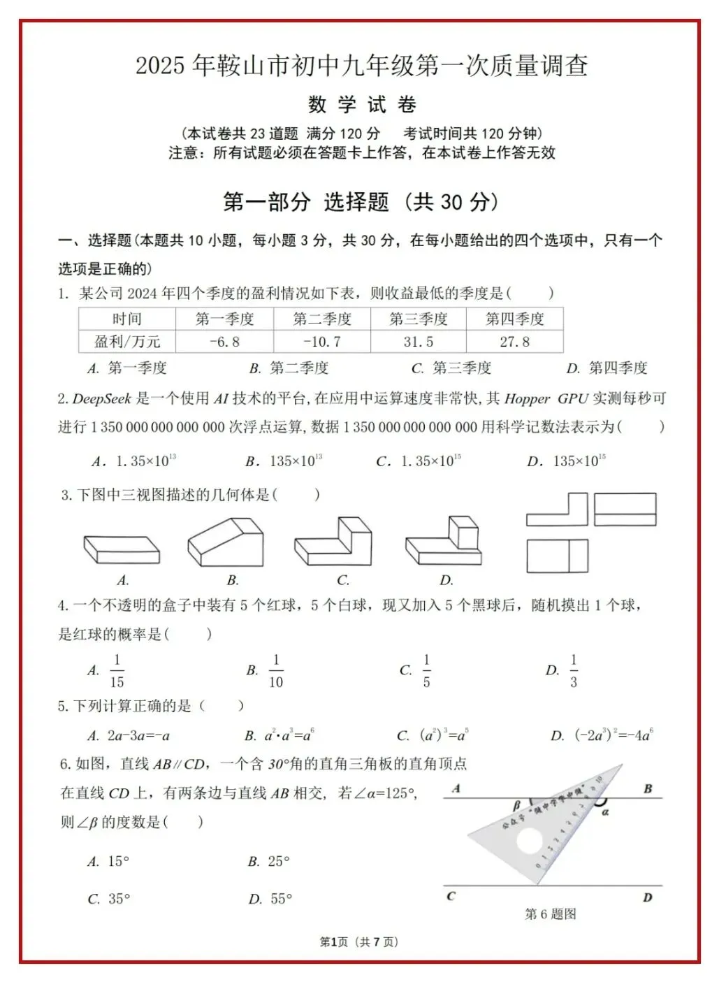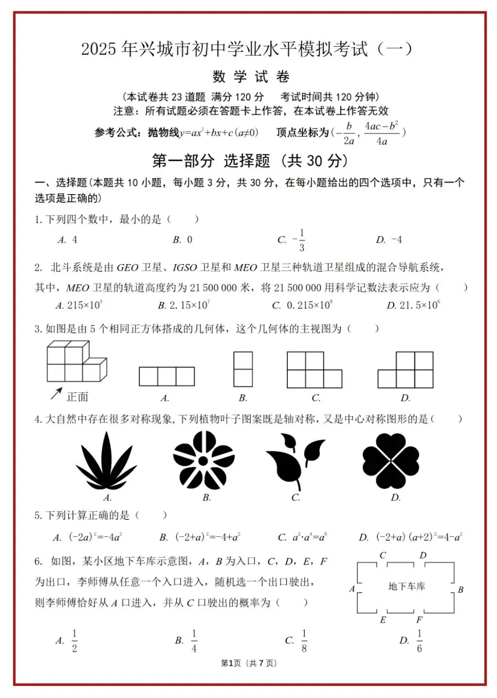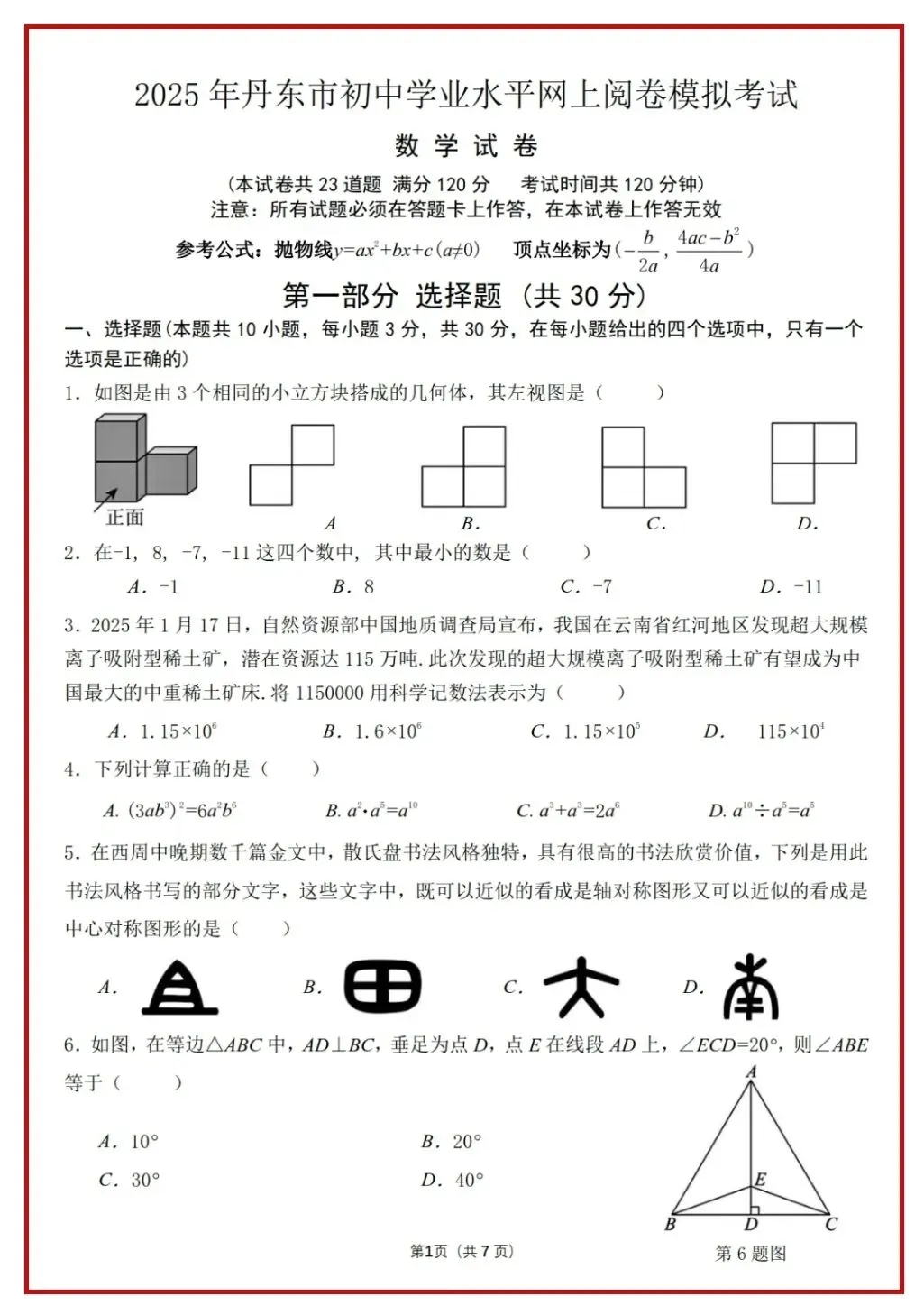 2024、2025中考数学真题