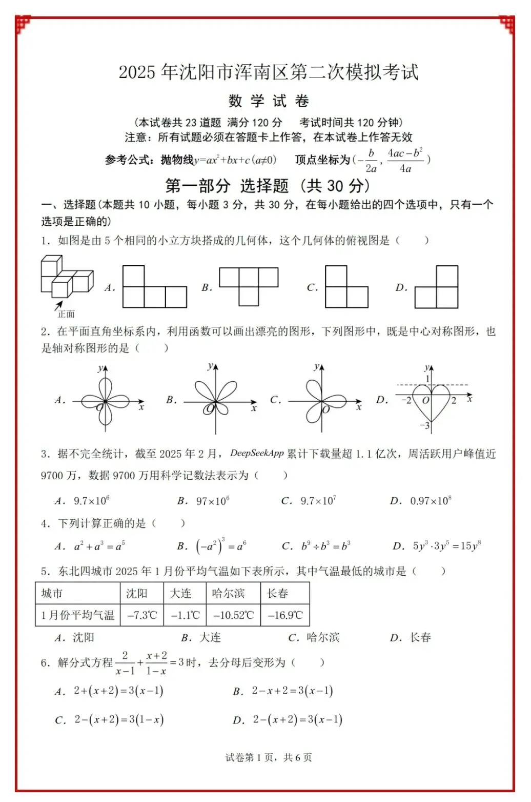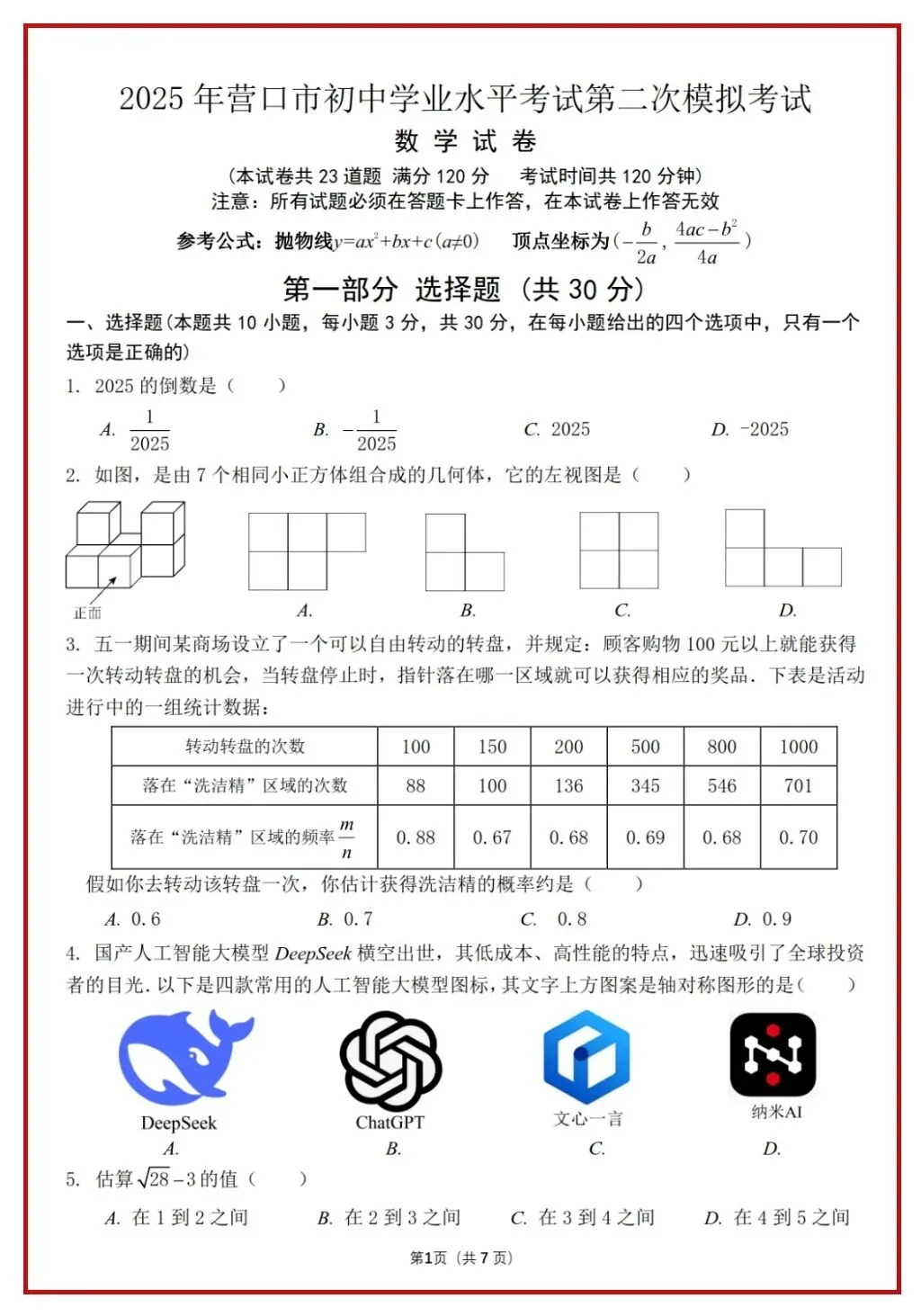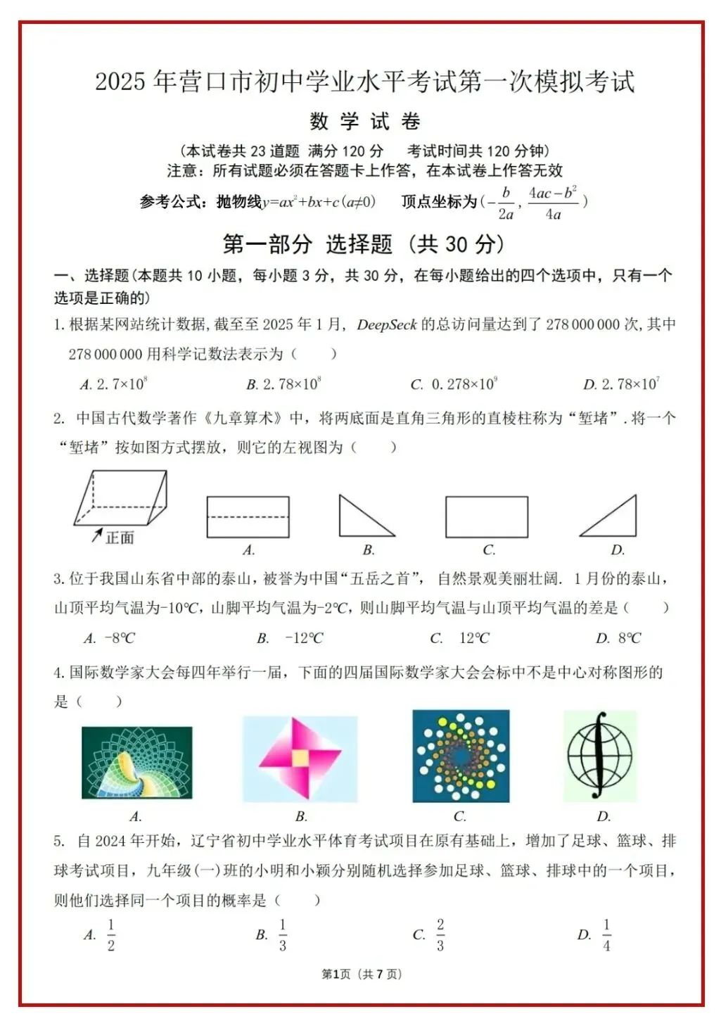 2025年辽宁省各市双模数学