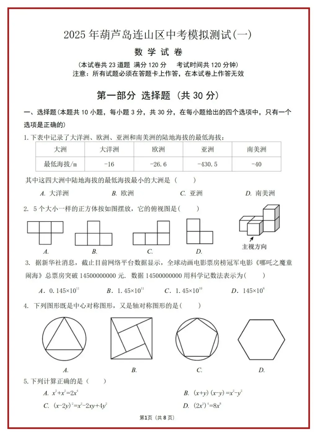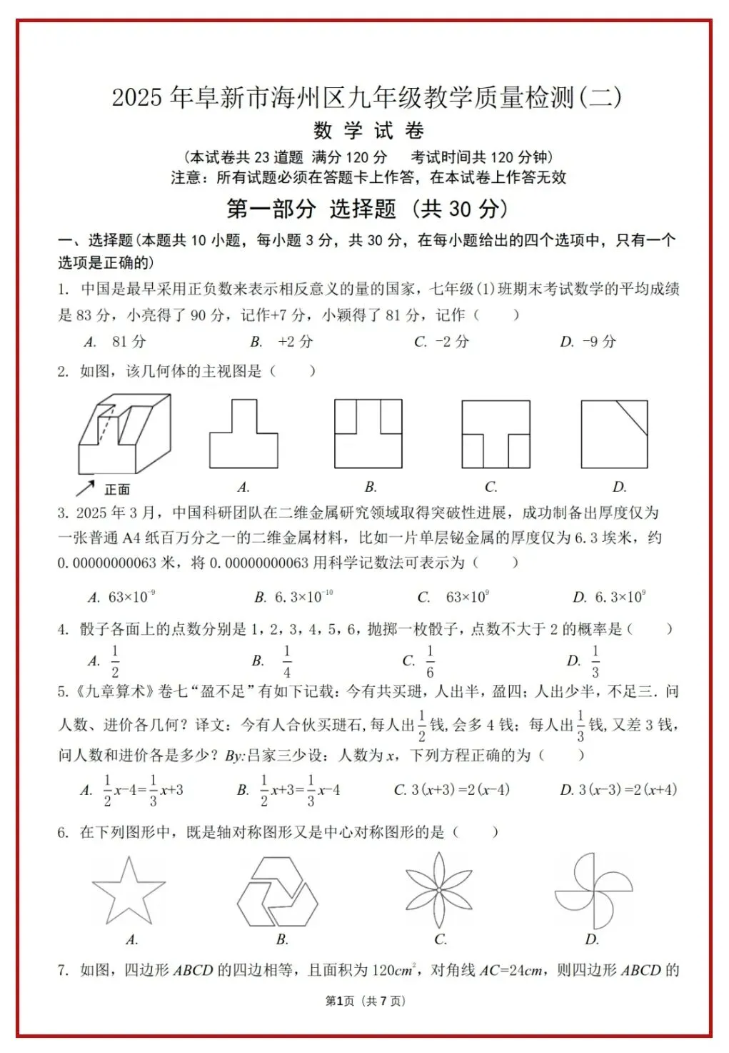 三、情境命题明显增多了,既有现实生活实际情境,也有数学问题情境,试卷由6页增加到8页。