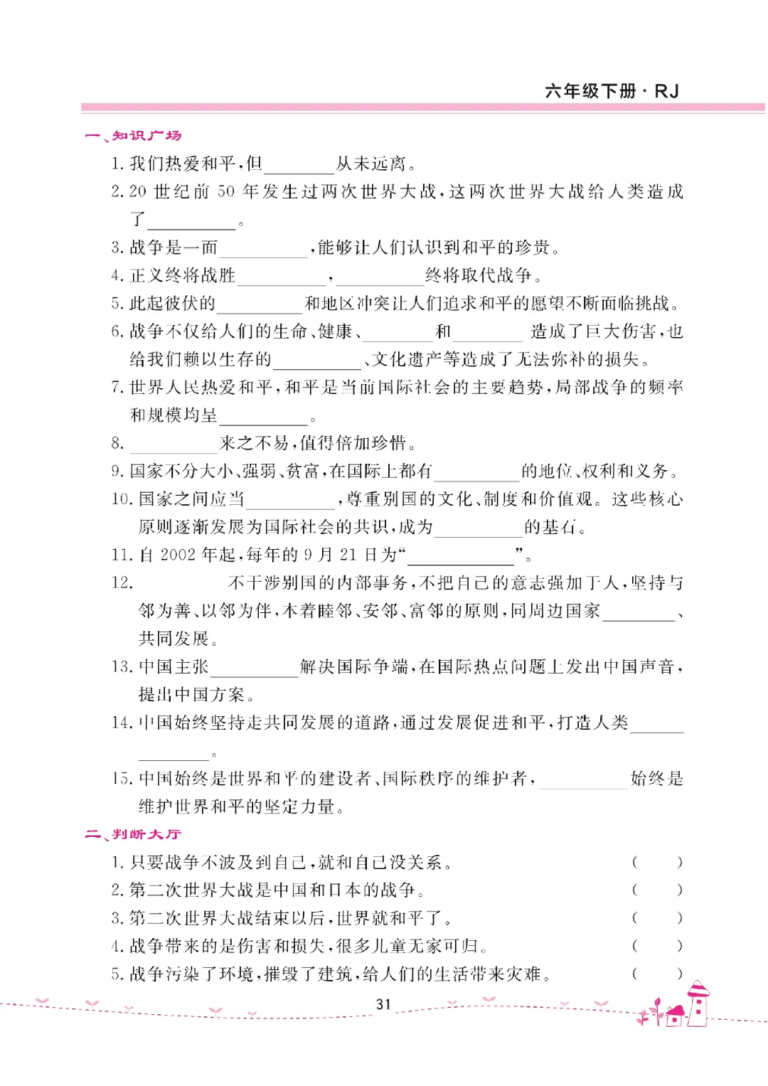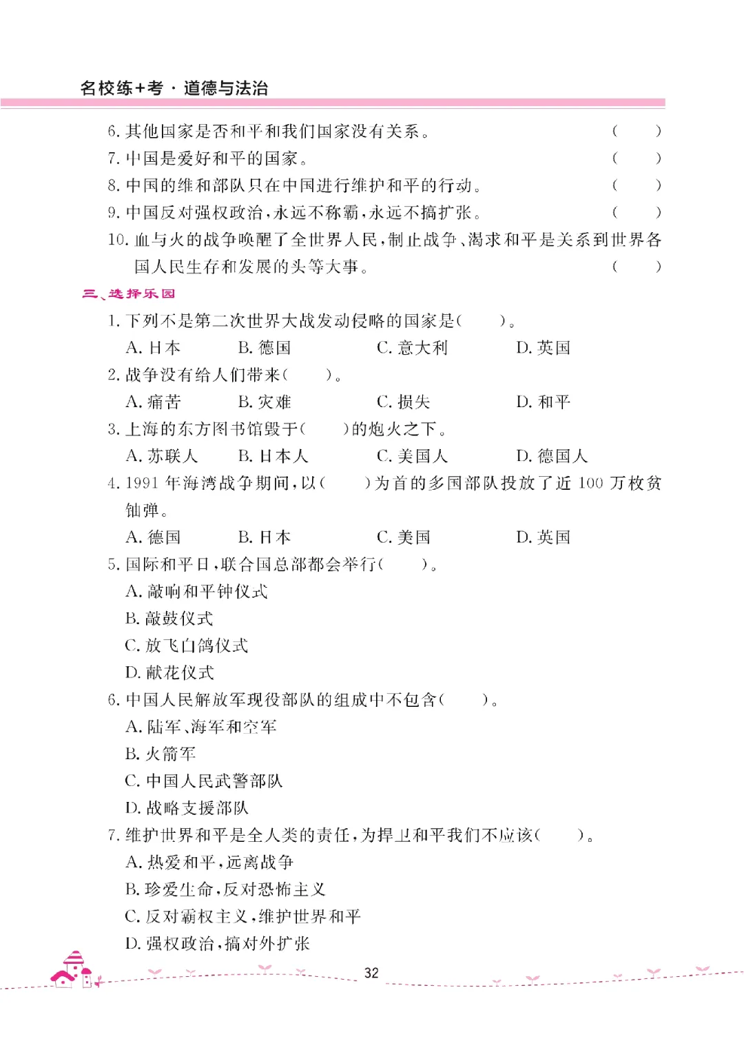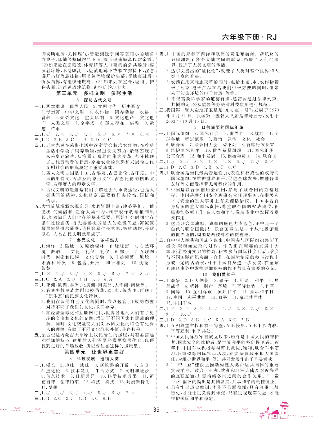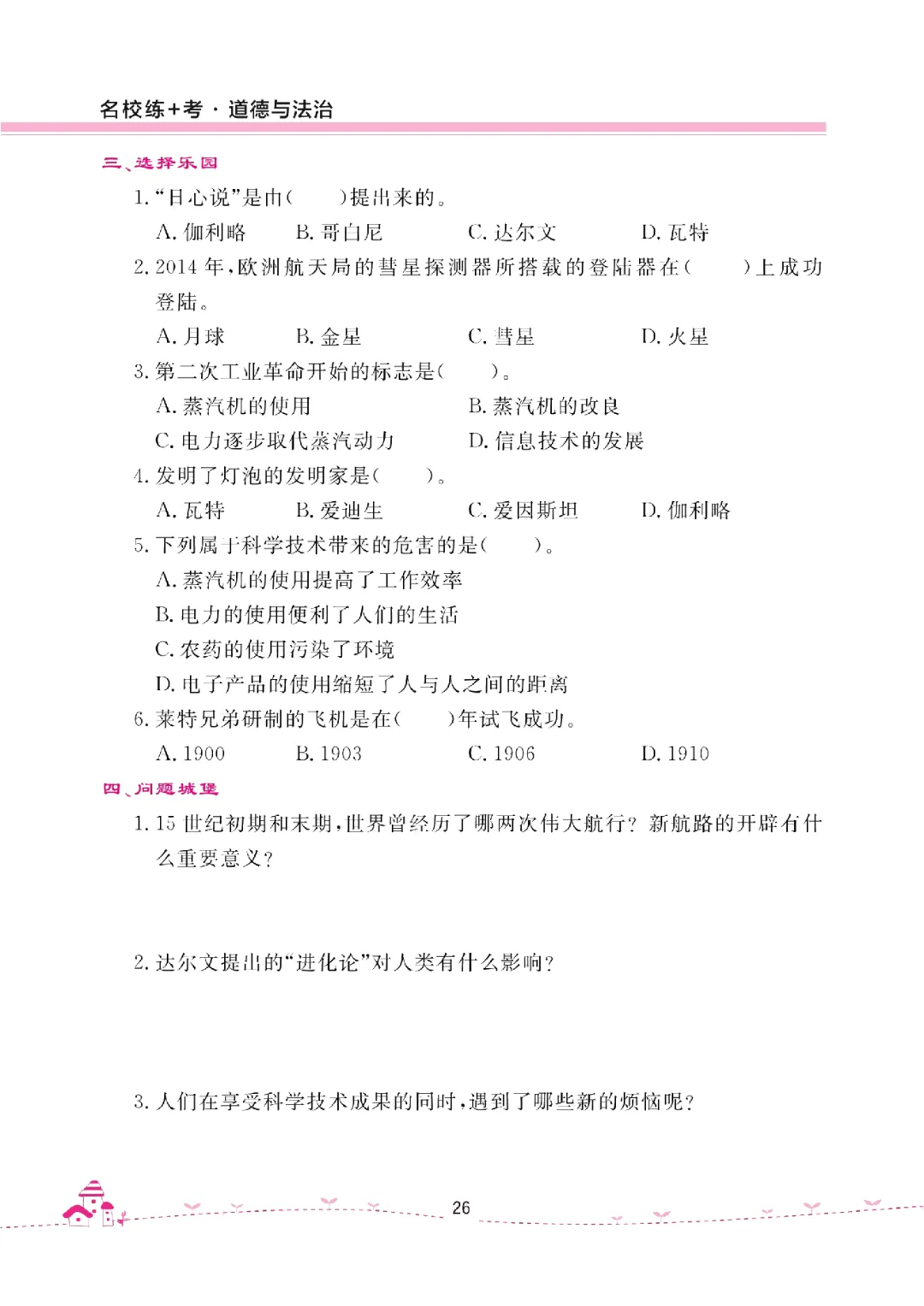 26年六年级下册《道德与法治试卷(单元+期中+期末+课课练)》含答案共40页电子版可打印。