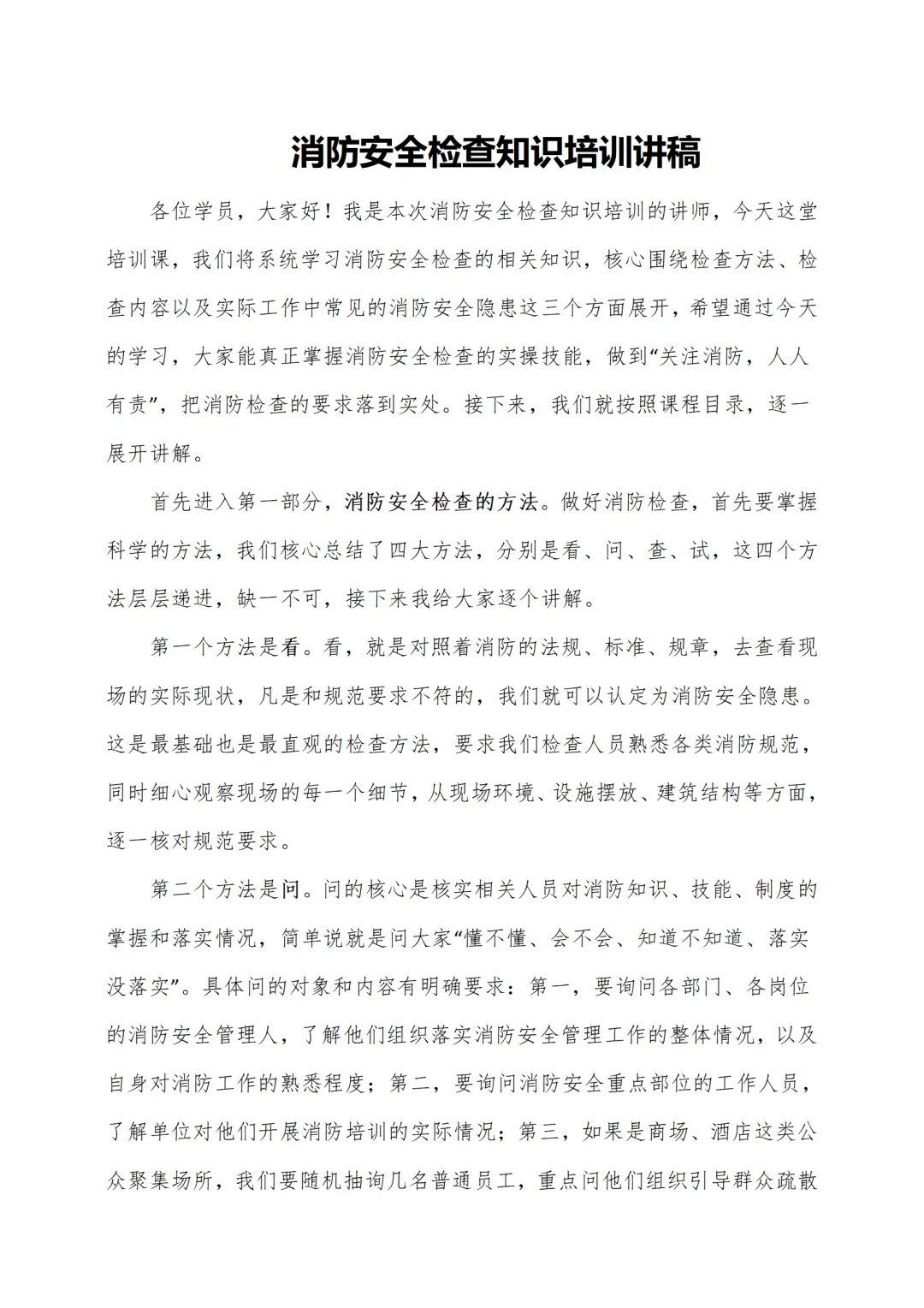 >消防安全检查知识( 讲稿+试卷+记录+签到)