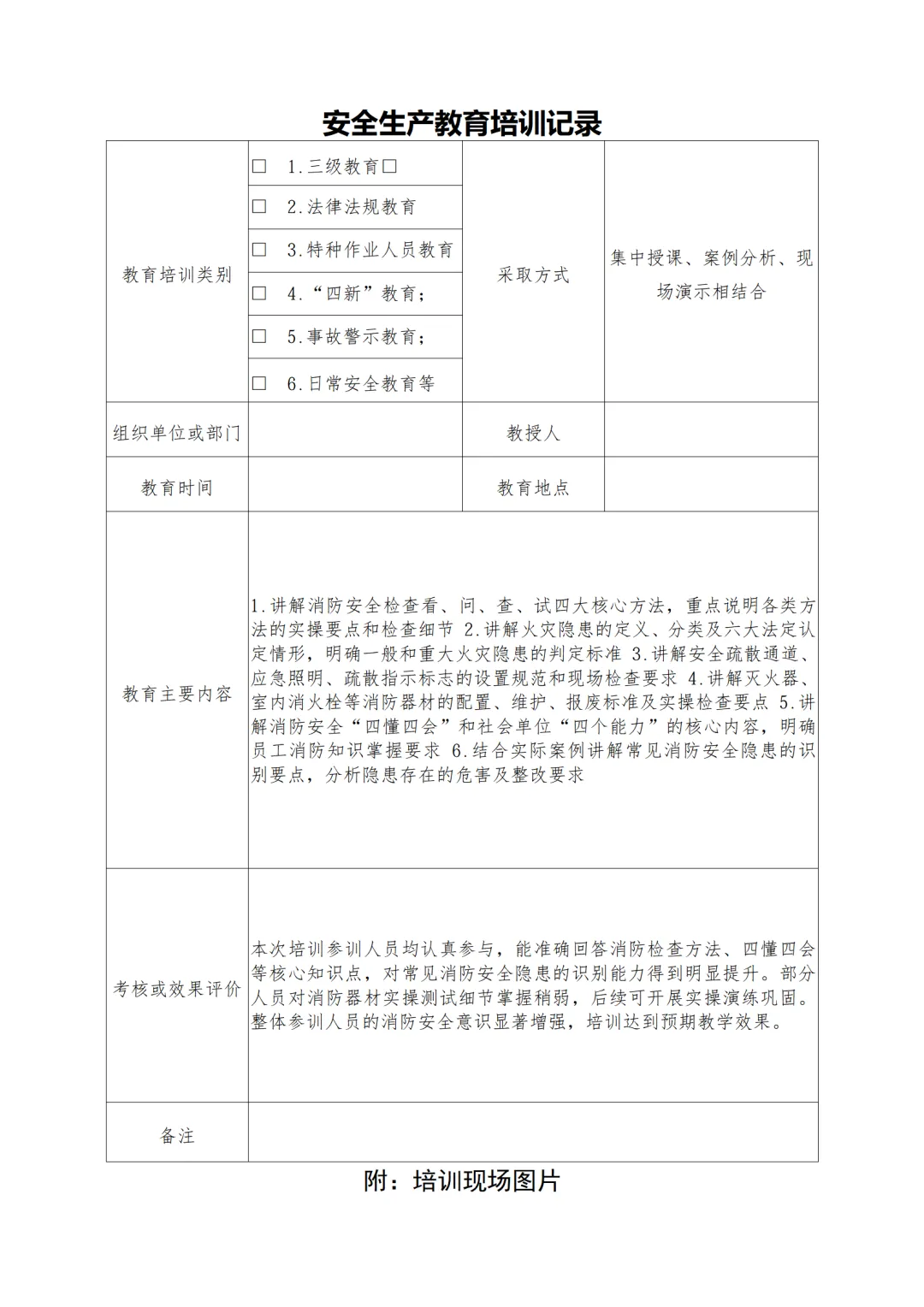消防安全检查知识( 讲稿+试卷+记录+签到)