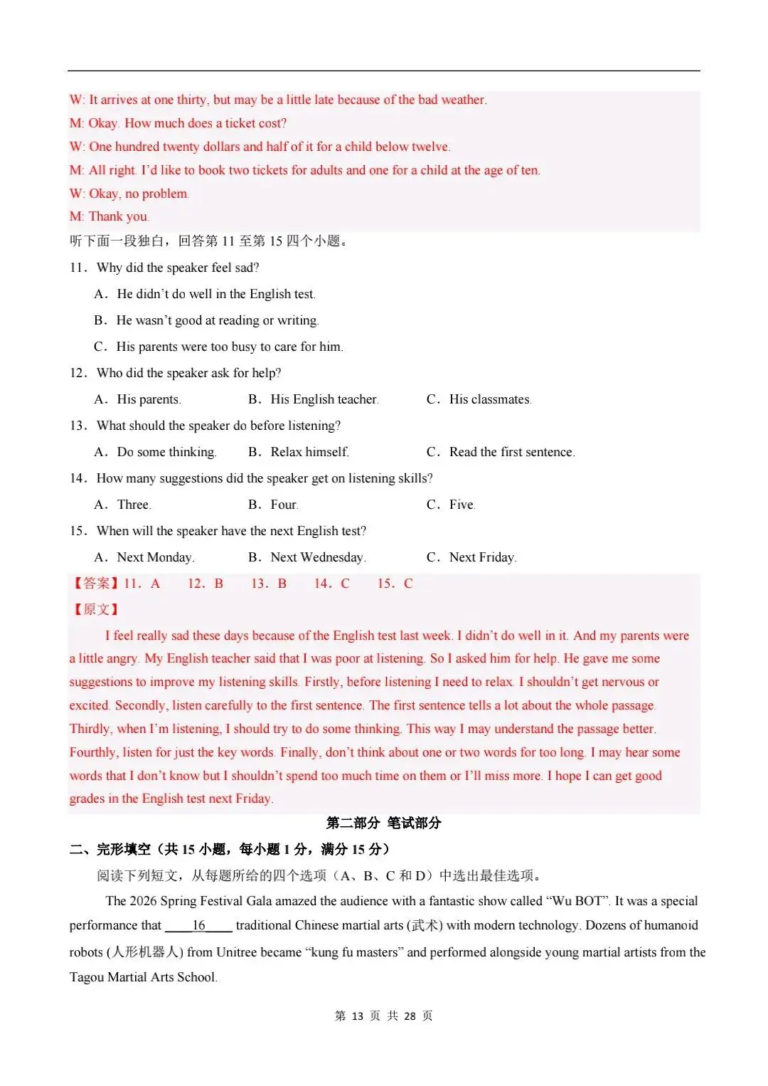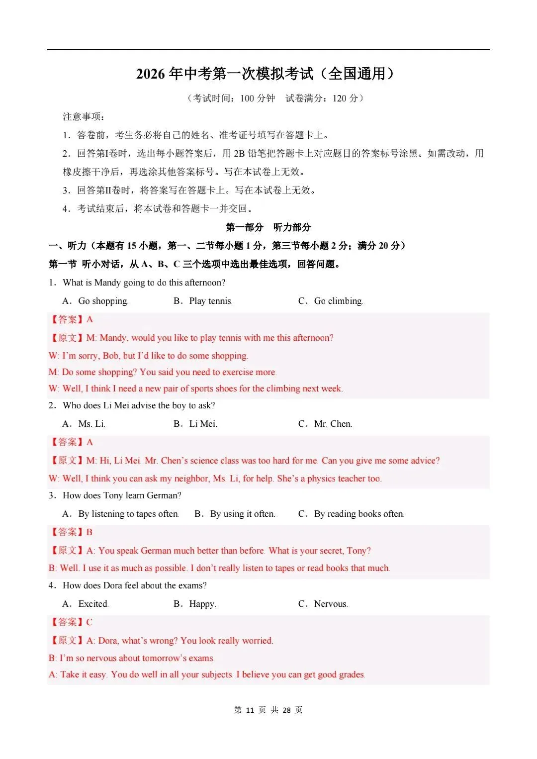 2026年中考英语一模试卷(全国卷+各地区卷)