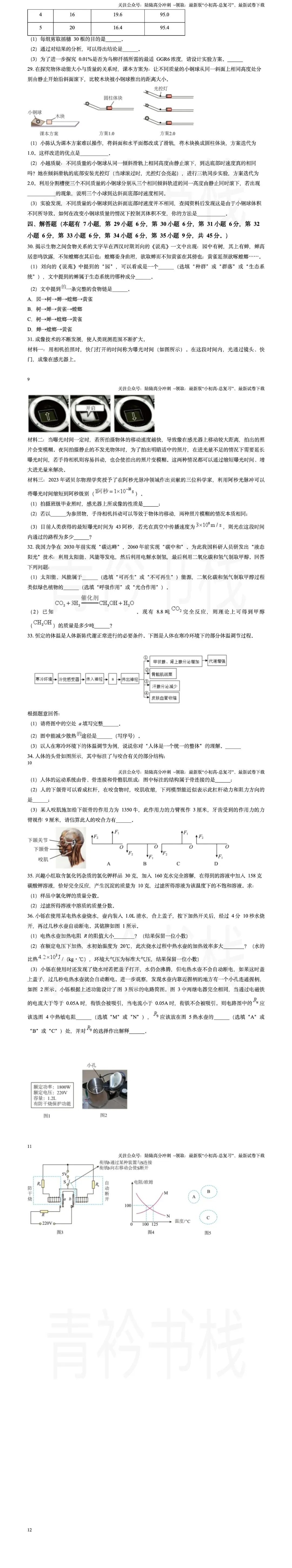 >2024年浙北初中学业水平调研测评科学试卷