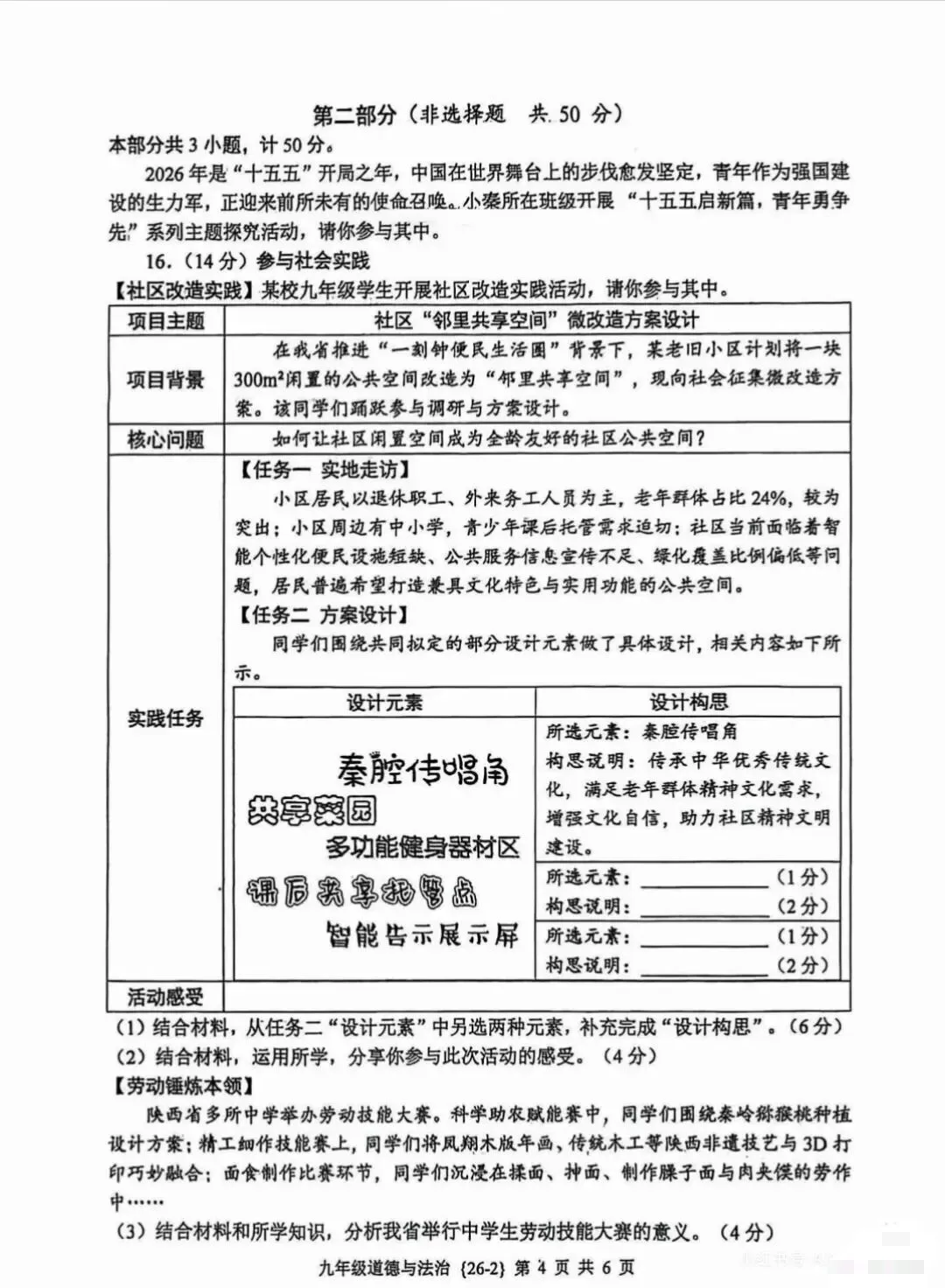 2.素养导向明确:重点考查政治认同、法治意识、公共参与、责任担当等核心素养,比如社区改造实践、劳动技能大赛、维护国家安全等题目,都在引导学生从“解题”走向“解决问题”。