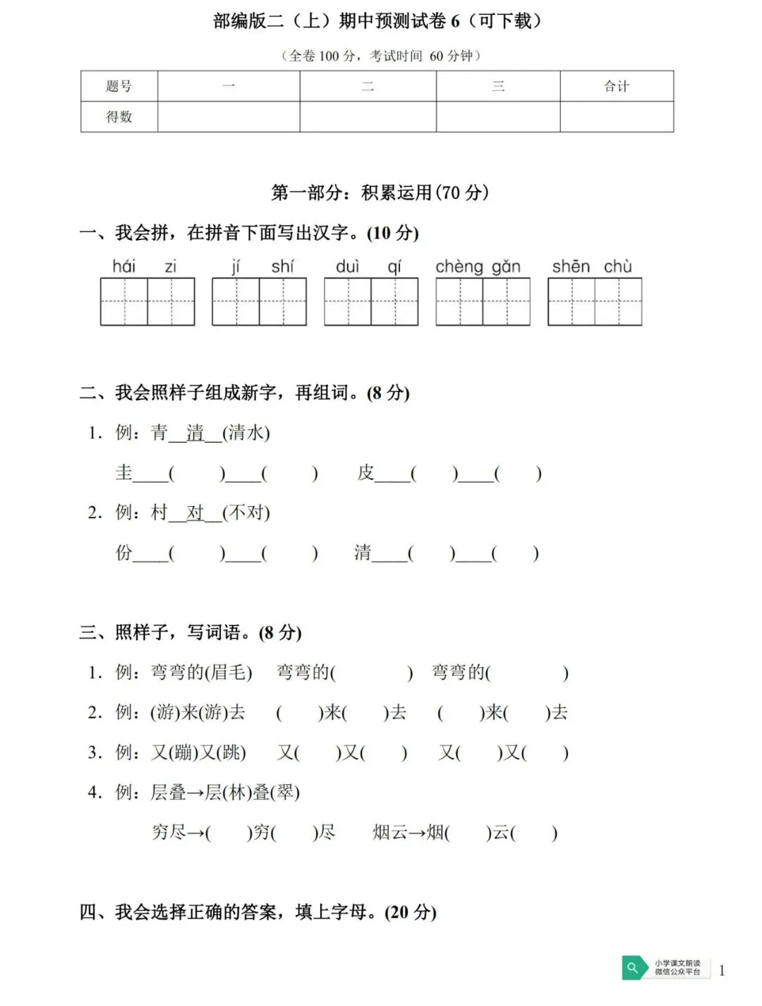 >部编版二(上)期中预测试卷6(可下载)