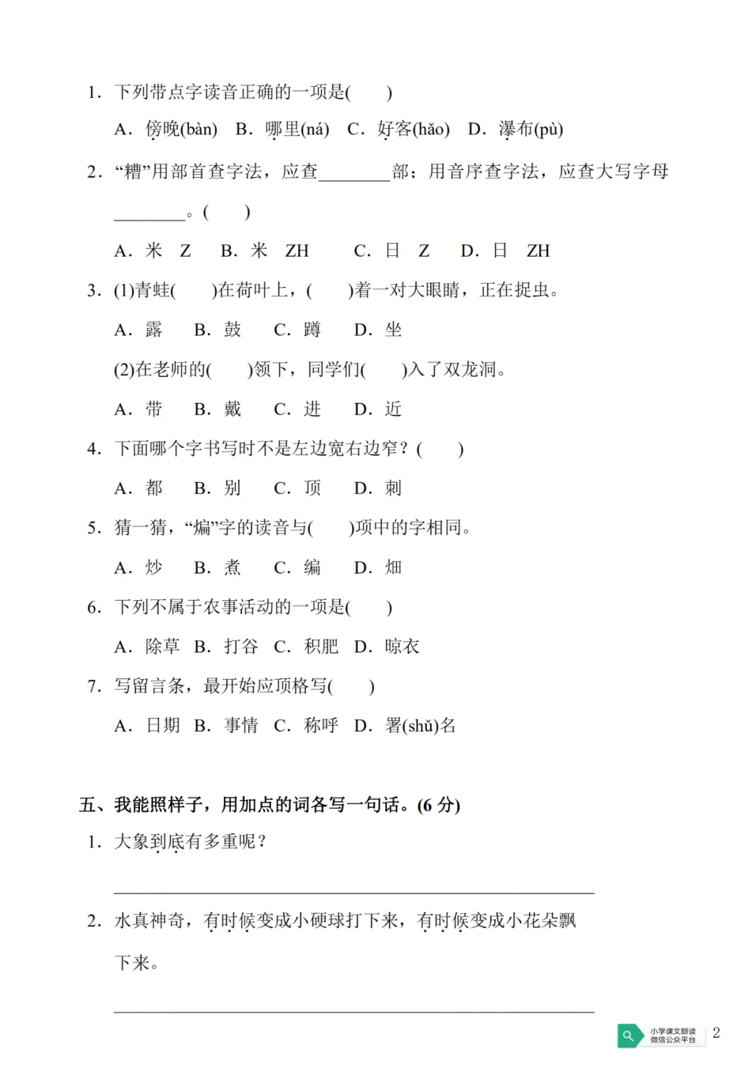 2026春六下语文第二单元情境精编试卷