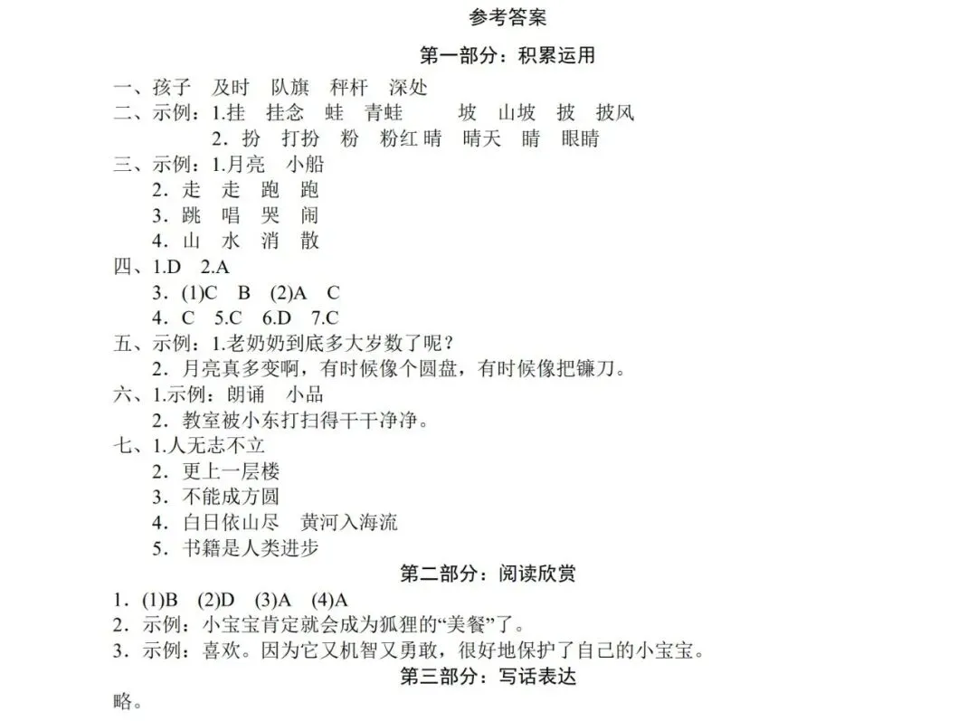 名校期末考试真题答案(1-3年级)