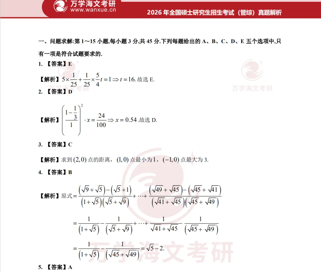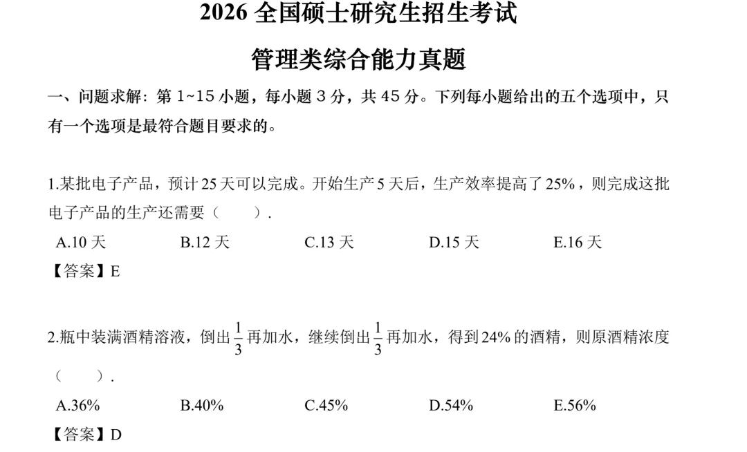 【管综】考研199管理类综合联考历年真题及答案解析PDF电子版(2009-2026年)