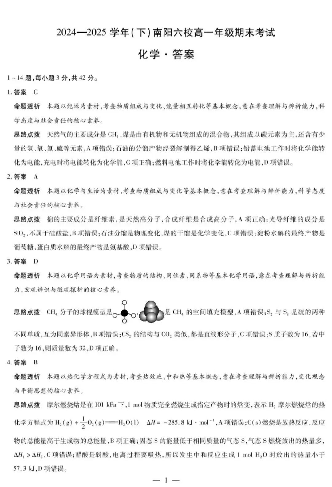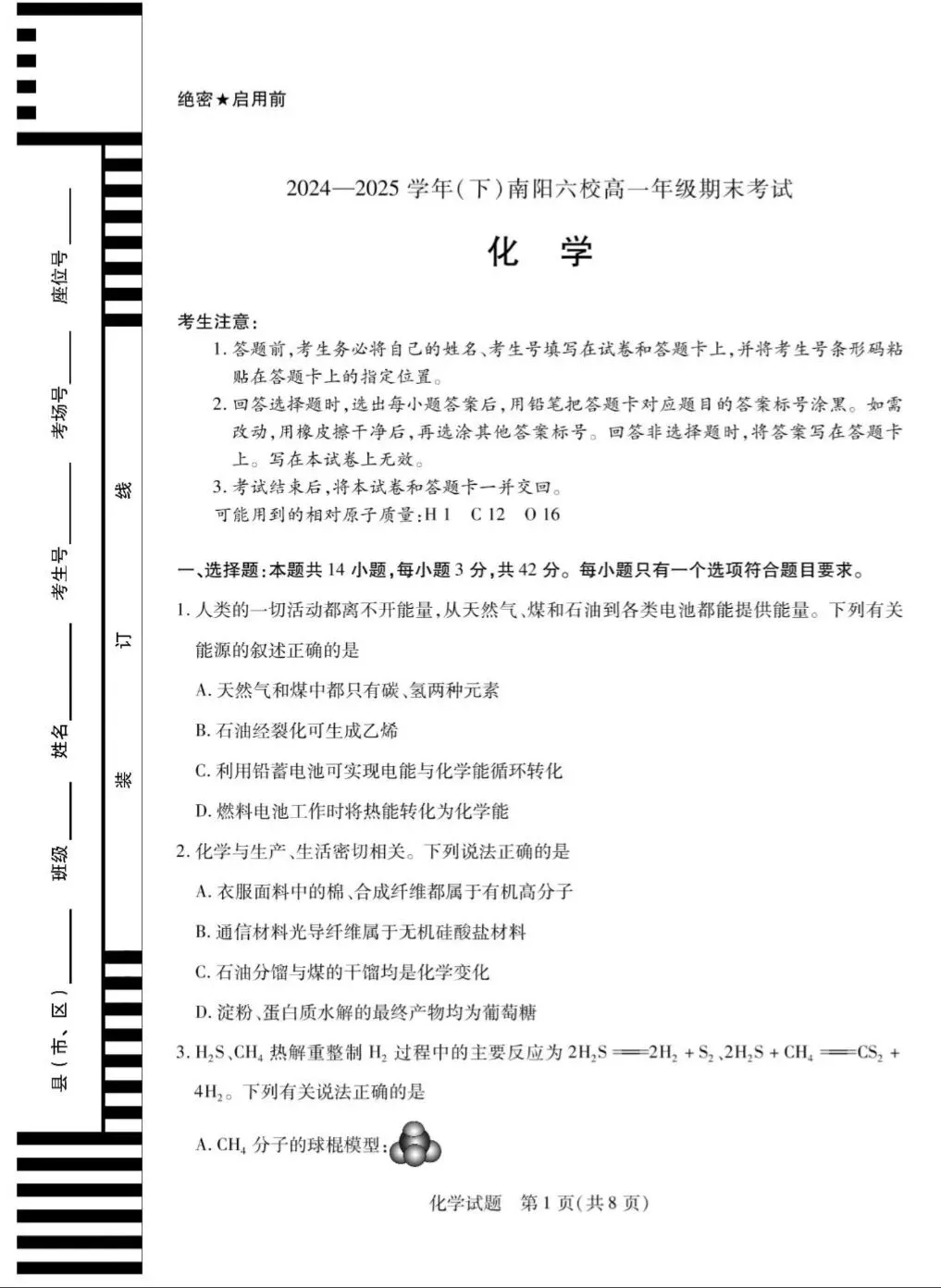 >往期试卷|河南南阳六校2024-2025高一化学下学期期末试卷和答案.pdf