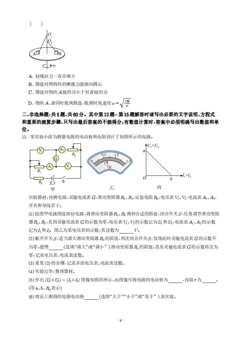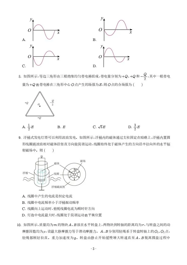 2026届广州市高三物理第一次综合测试试卷物理题目20260318广州一模物理