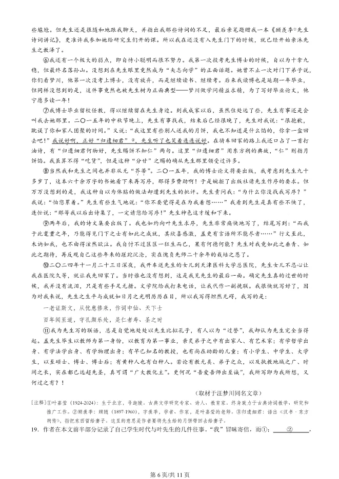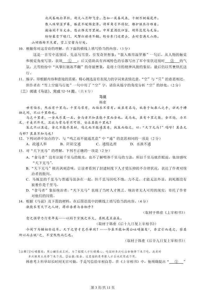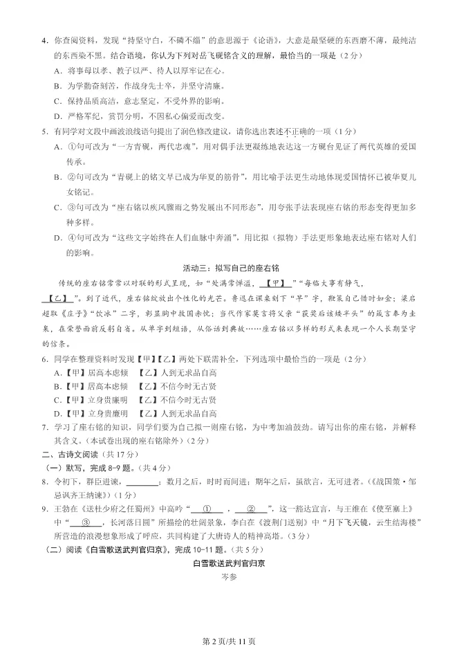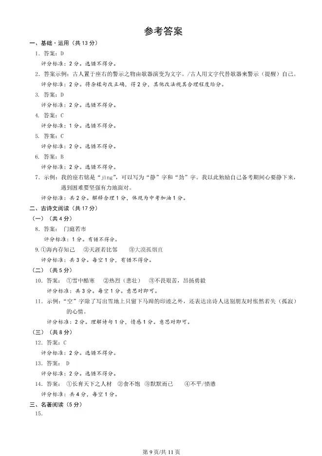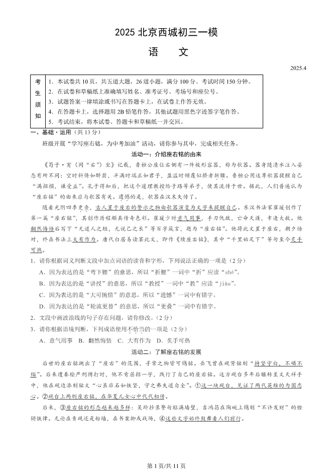 2025北京西城初三一模语文试卷(有答案) ;word版本可下载使用;